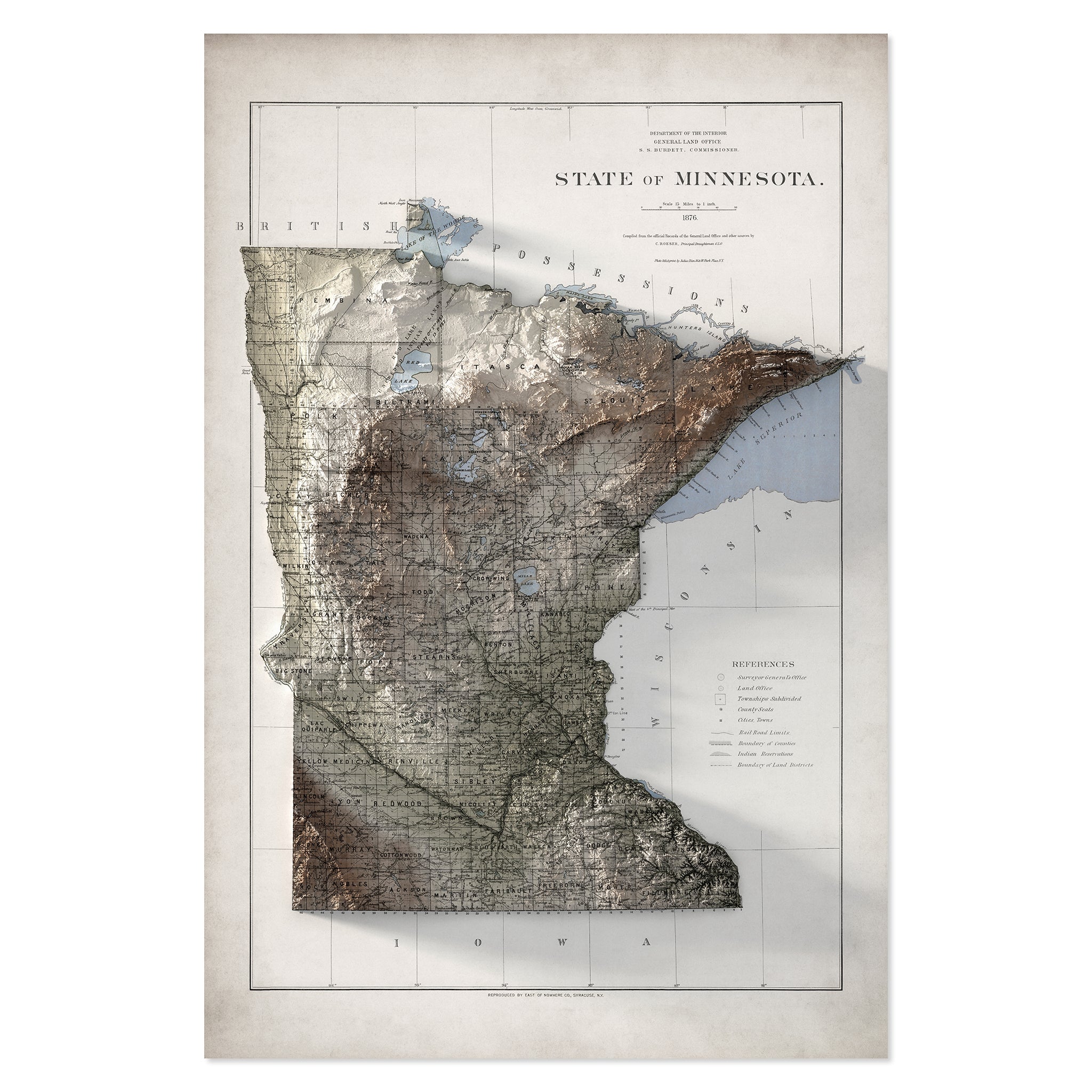 Minnesota Elevation Map | 1876 Vintage Topographic Reproduction