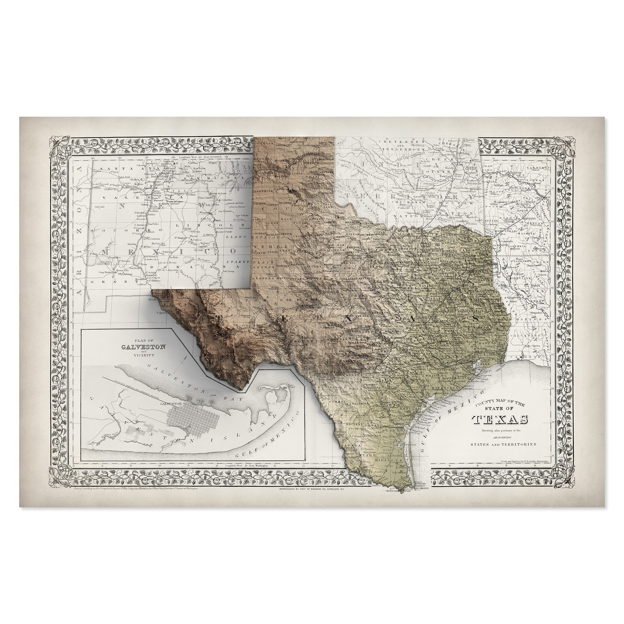 Texas Elevation Map | 1880 Vintage Topographic Reproduction