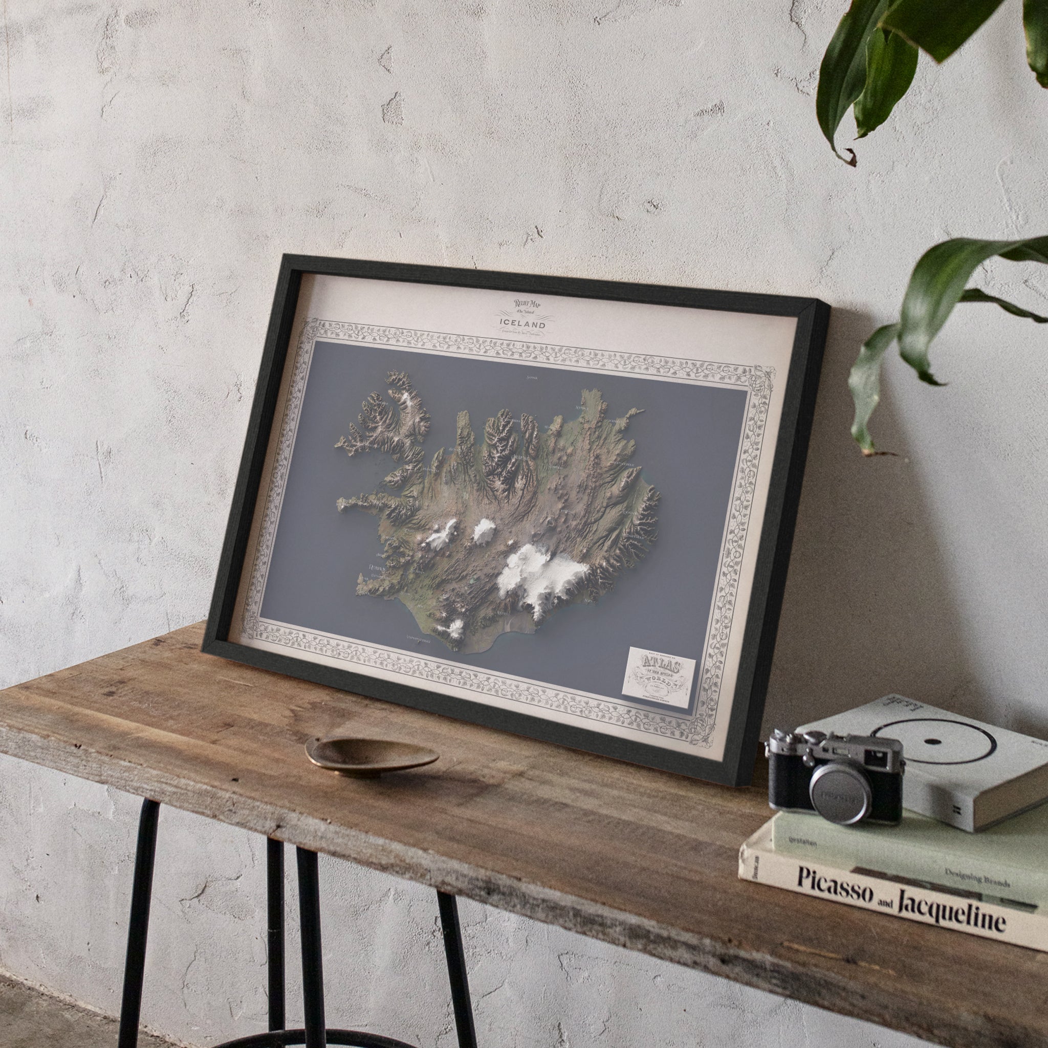 Our atlas-style elevation map posters are original designs inspired by the look and feel of antique atlas pages. Combining modern topographic data and labeling with vintage-inspired styling, these maps blend old-world charm with contemporary accuracy. Each piece is rendered using advanced 3D techniques to create a dramatic shaded relief effect, producing a striking optical illusion of raised terrain. Printed as archival-quality giclée art prints, they offer timeless wall art that’s perfect for framing and elevating your home decor with a touch of history.