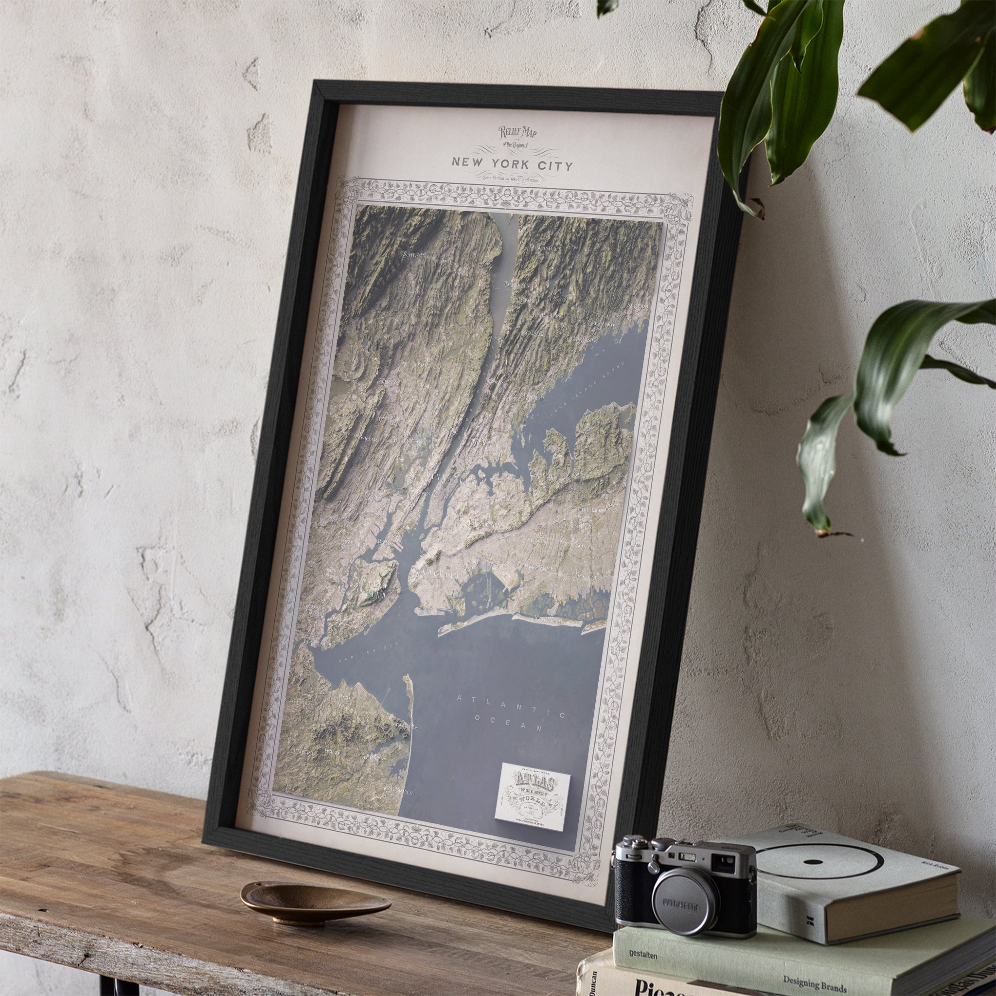 Our atlas-style elevation map posters are original designs inspired by the look and feel of antique atlas pages. Combining modern topographic data and labeling with vintage-inspired styling, these maps blend old-world charm with contemporary accuracy. Each piece is rendered using advanced 3D techniques to create a dramatic shaded relief effect, producing a striking optical illusion of raised terrain. Printed as archival-quality giclée art prints, they offer timeless wall art that’s perfect for framing and elevating your home decor with a touch of history.