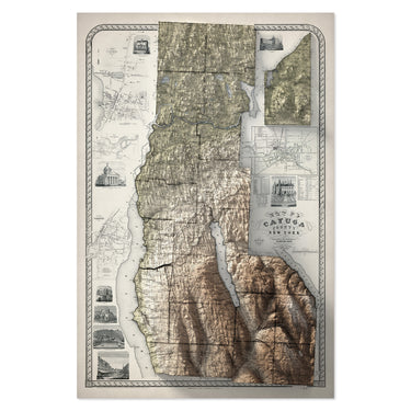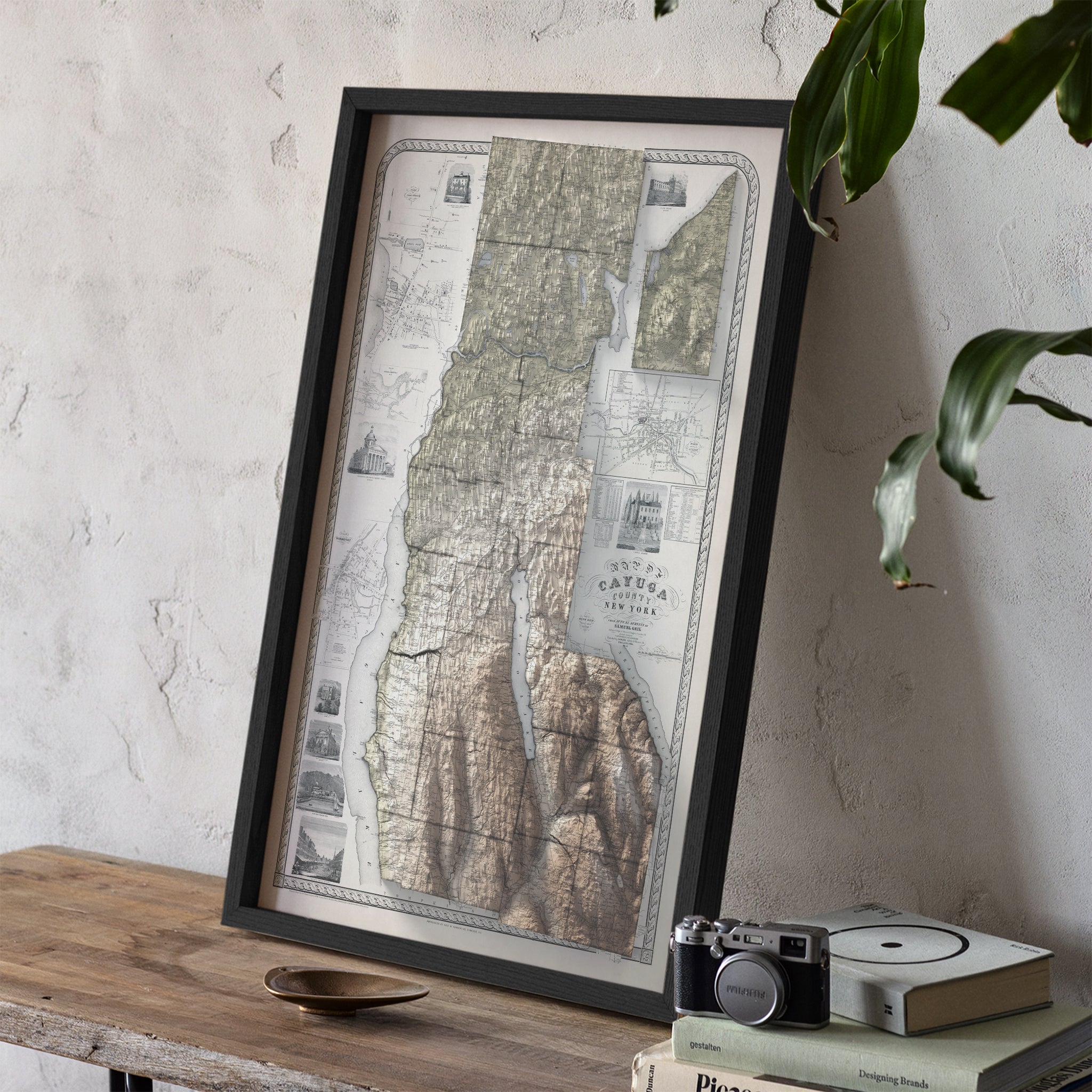 Cayuga County Elevation Map | 1853 Vintage Topographic Reproduction