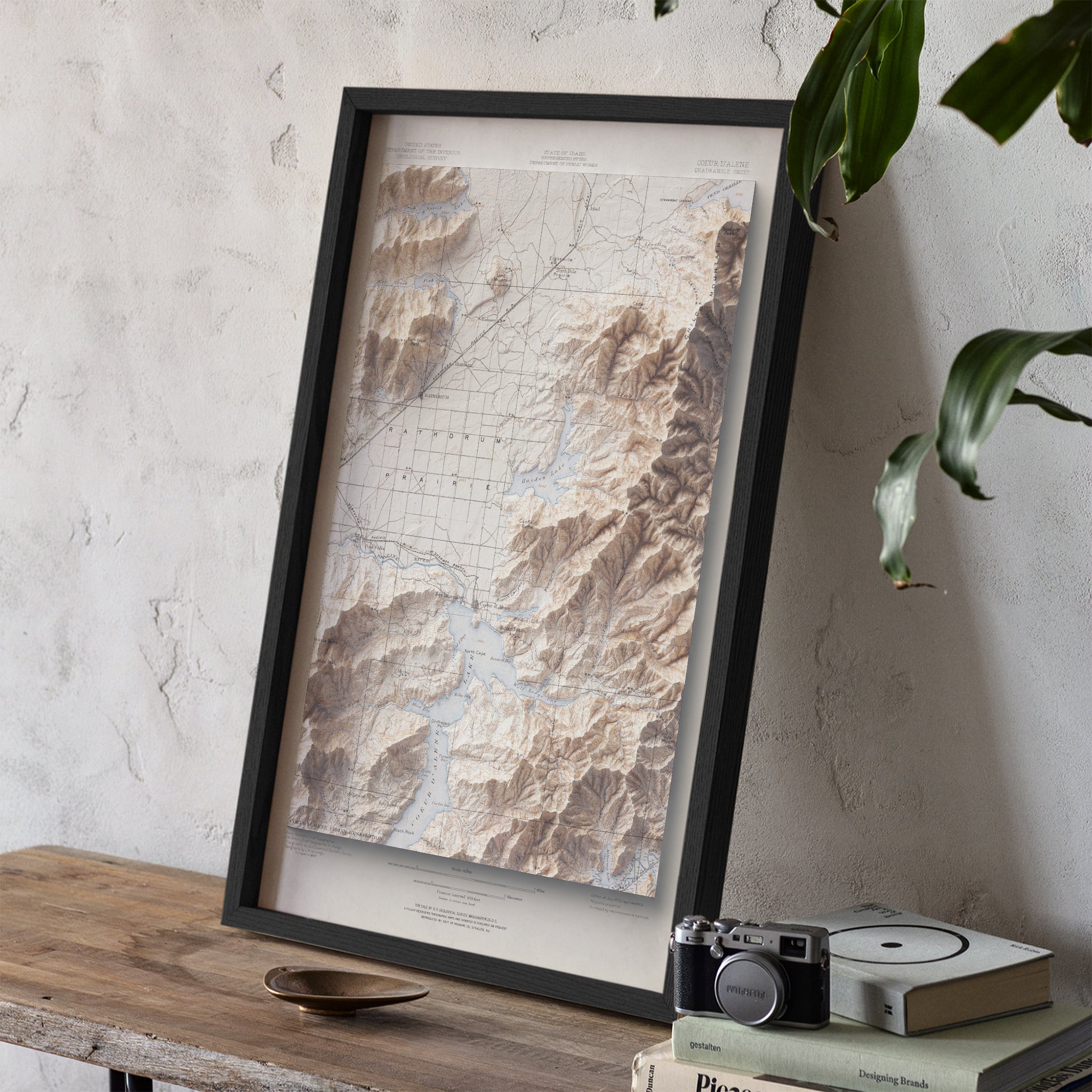 Discover our vintage elevation map posters, authentic reproduction of historic map prints enhanced with modern techniques like colorization and 3D rendering. These giclee art prints feature a stunning optical illusion that mimics raised terrain, creating the look of real topography on your wall. Printed on archival-quality paper, each relief map blends classic cartography with contemporary design, making it perfect for framing as wall art or adding a distinctive touch to your home decor.