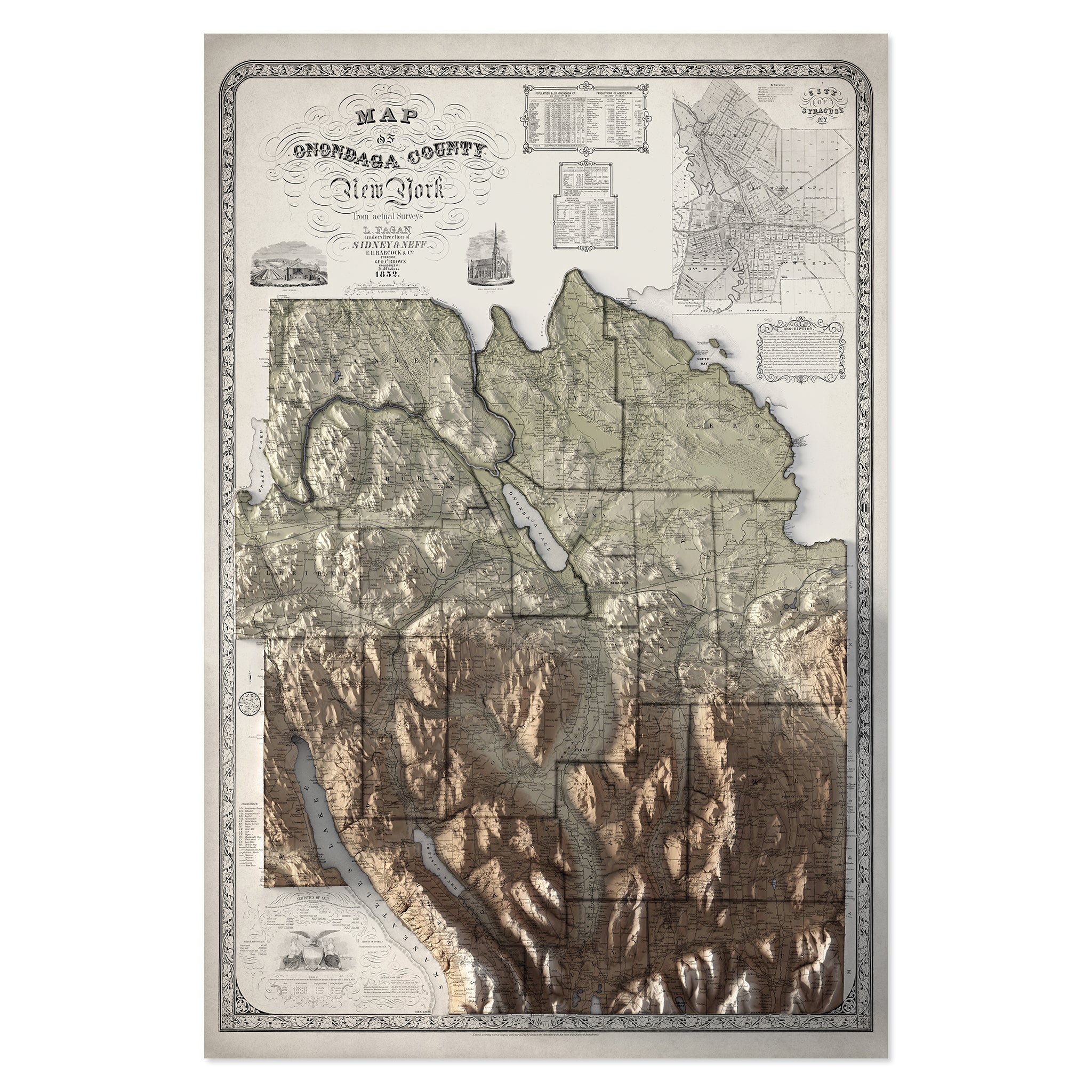 Onondaga County Elevation Map | 1852 Vintage Topographic Reproduction