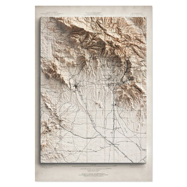 Discover our vintage elevation map posters, authentic reproduction of historic map prints enhanced with modern techniques like colorization and 3D rendering. These giclee art prints feature a stunning optical illusion that mimics raised terrain, creating the look of real topography on your wall. Printed on archival-quality paper, each relief map blends classic cartography with contemporary design, making it perfect for framing as wall art or adding a distinctive touch to your home decor.