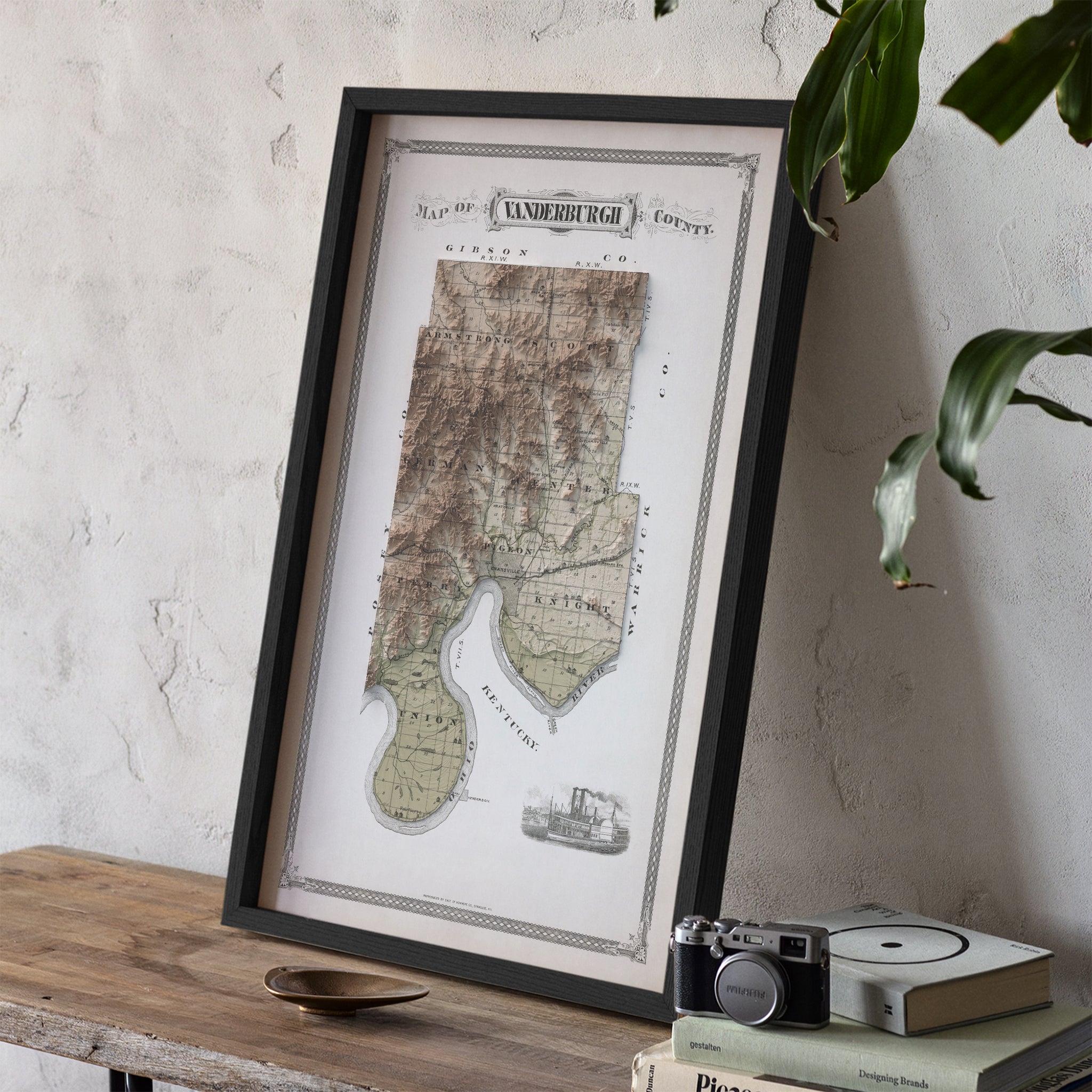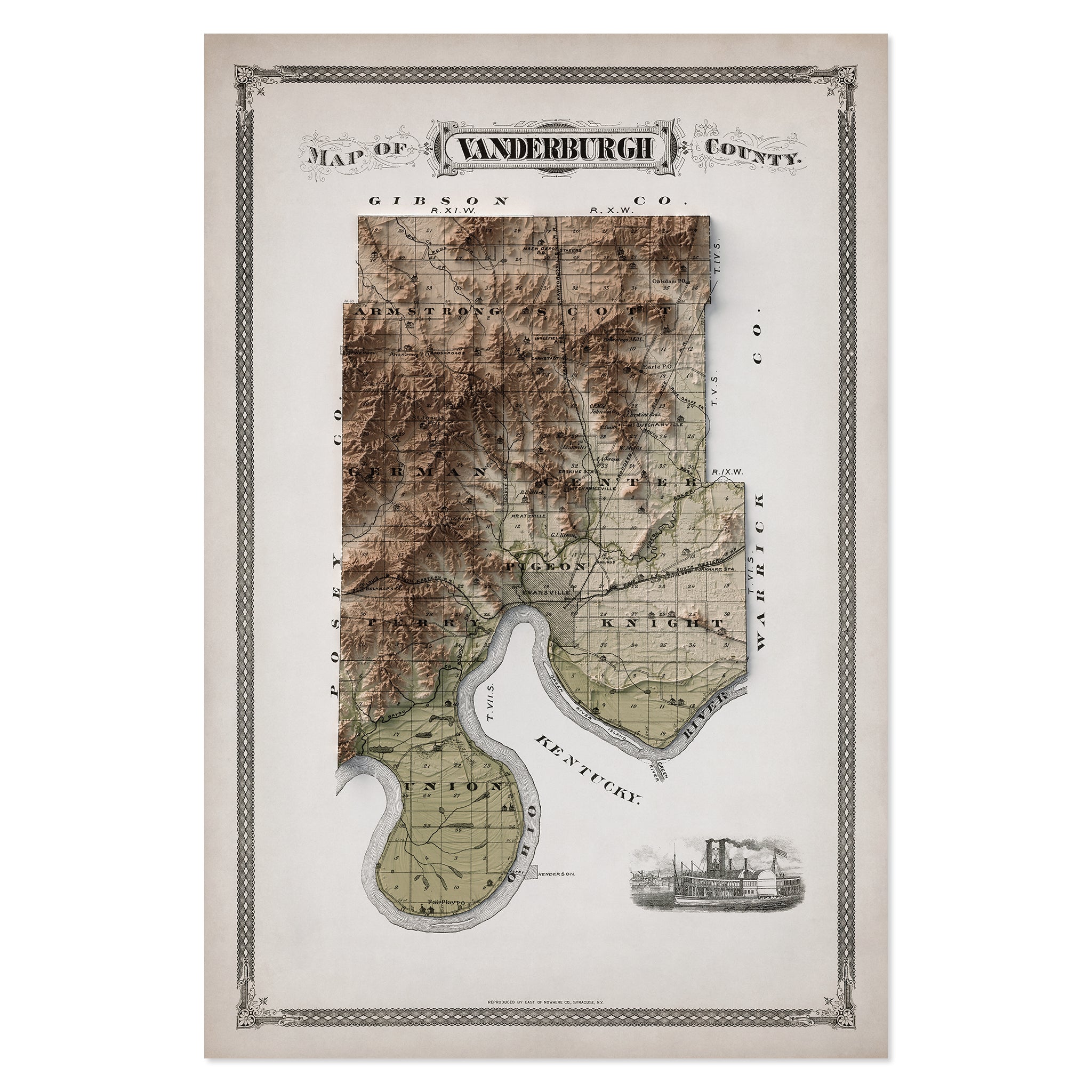 Vanderburgh County, IN Elevation Map | 1876 Vintage Topographic Reproduction