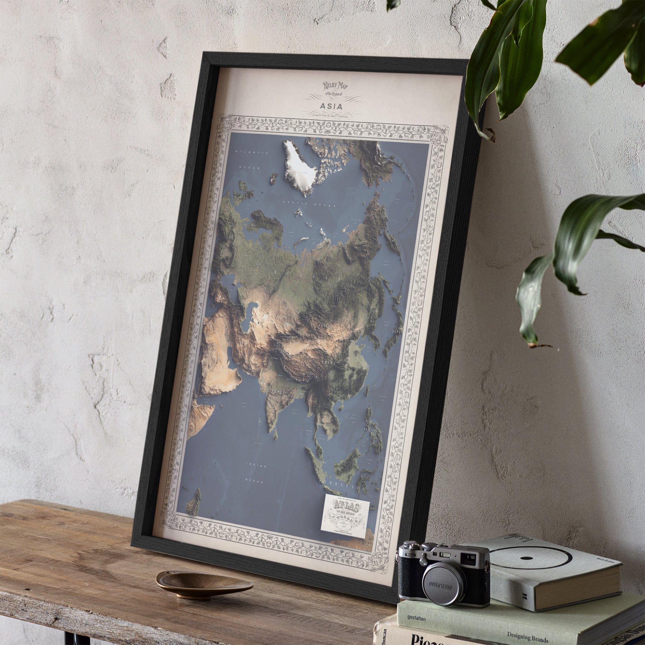 Our atlas-style elevation map posters are original designs inspired by the look and feel of antique atlas pages. Combining modern topographic data and labeling with vintage-inspired styling, these maps blend old-world charm with contemporary accuracy. Each piece is rendered using advanced 3D techniques to create a dramatic shaded relief effect, producing a striking optical illusion of raised terrain. Printed as archival-quality giclée art prints, they offer timeless wall art that’s perfect for framing and elevating your home decor with a touch of history.