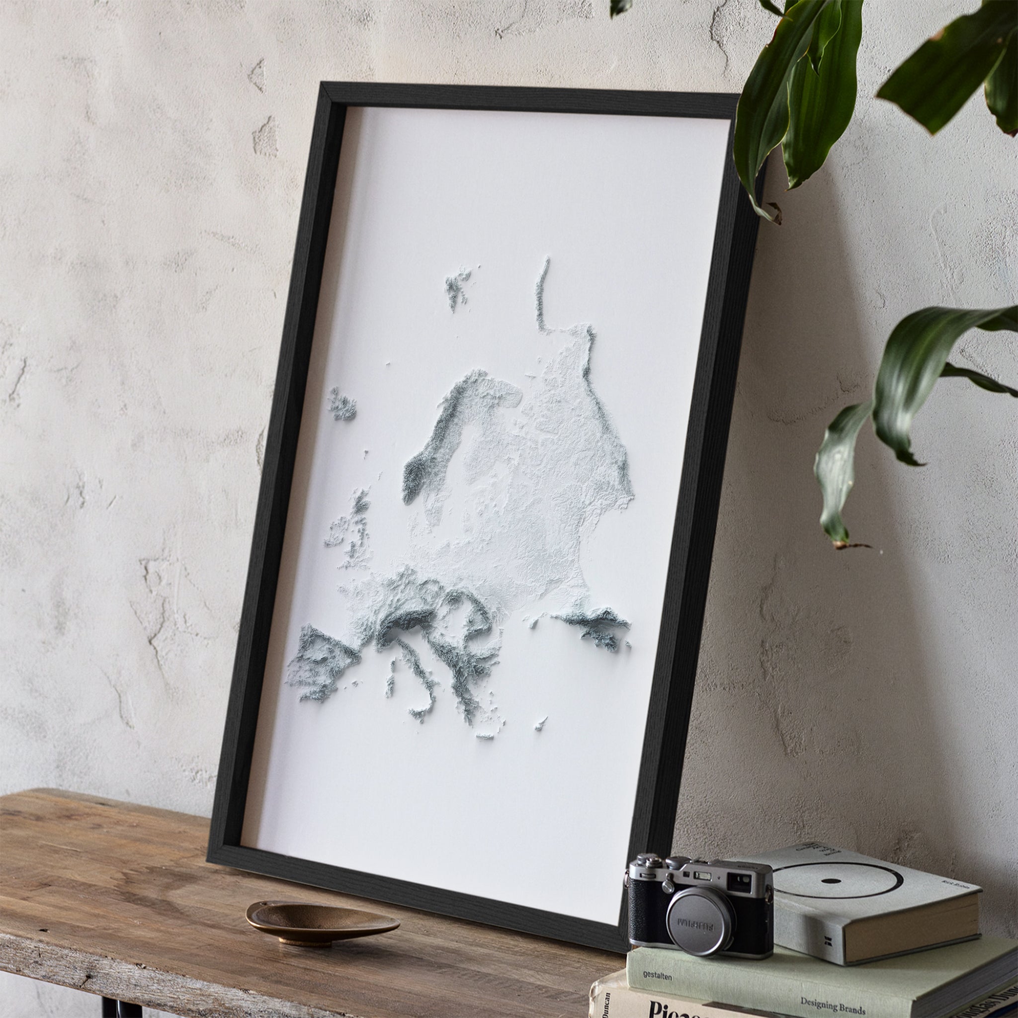 Our minimalist elevation map posters are original designs created using real satellite topographic data and advanced 3D rendering techniques. Each map features exaggerated terrain and dramatic shading to highlight the natural contours of the landscape, producing a striking optical illusion that appears three-dimensional. Printed as high-quality giclée art prints, these modern relief maps bring a clean, bold aesthetic to any space. Perfect for framing and they make for distinctive wall art for a refined addition to your home decor.