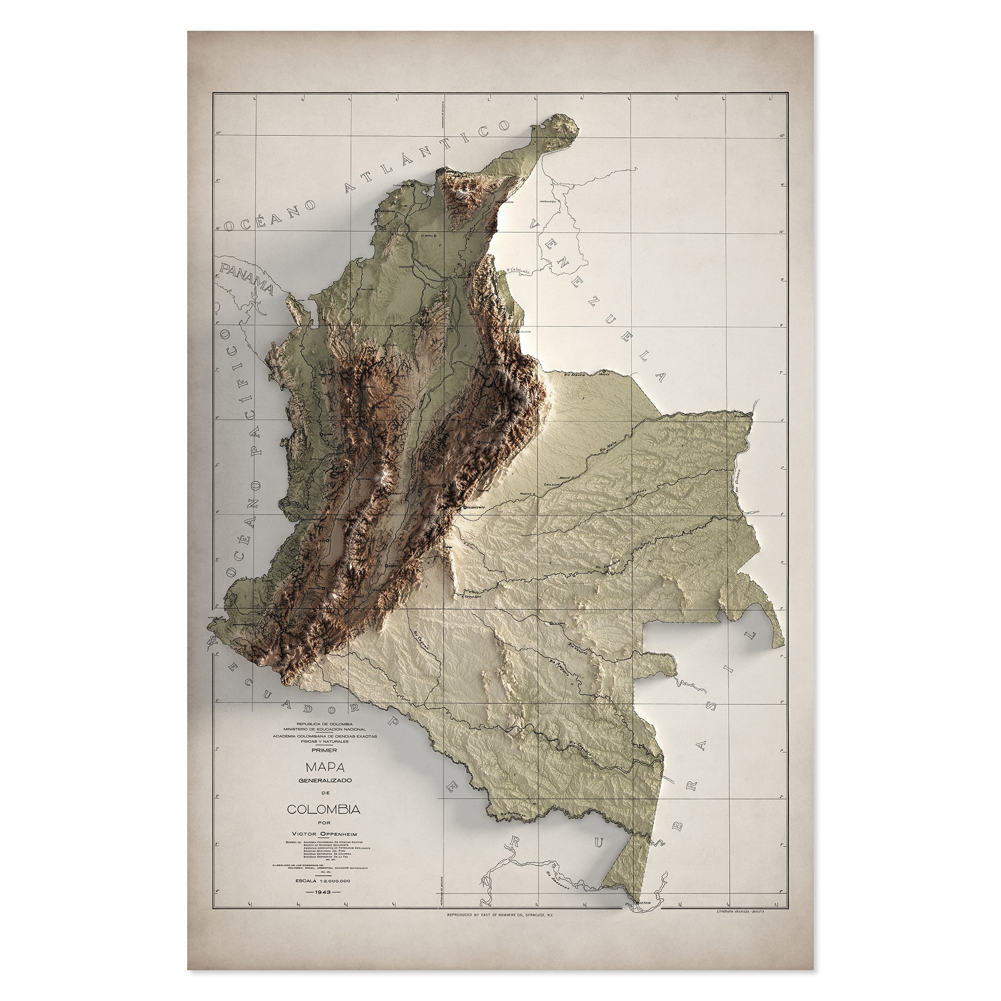 Colombia Elevation Map | 1943 Vintage Topographic Reproduction