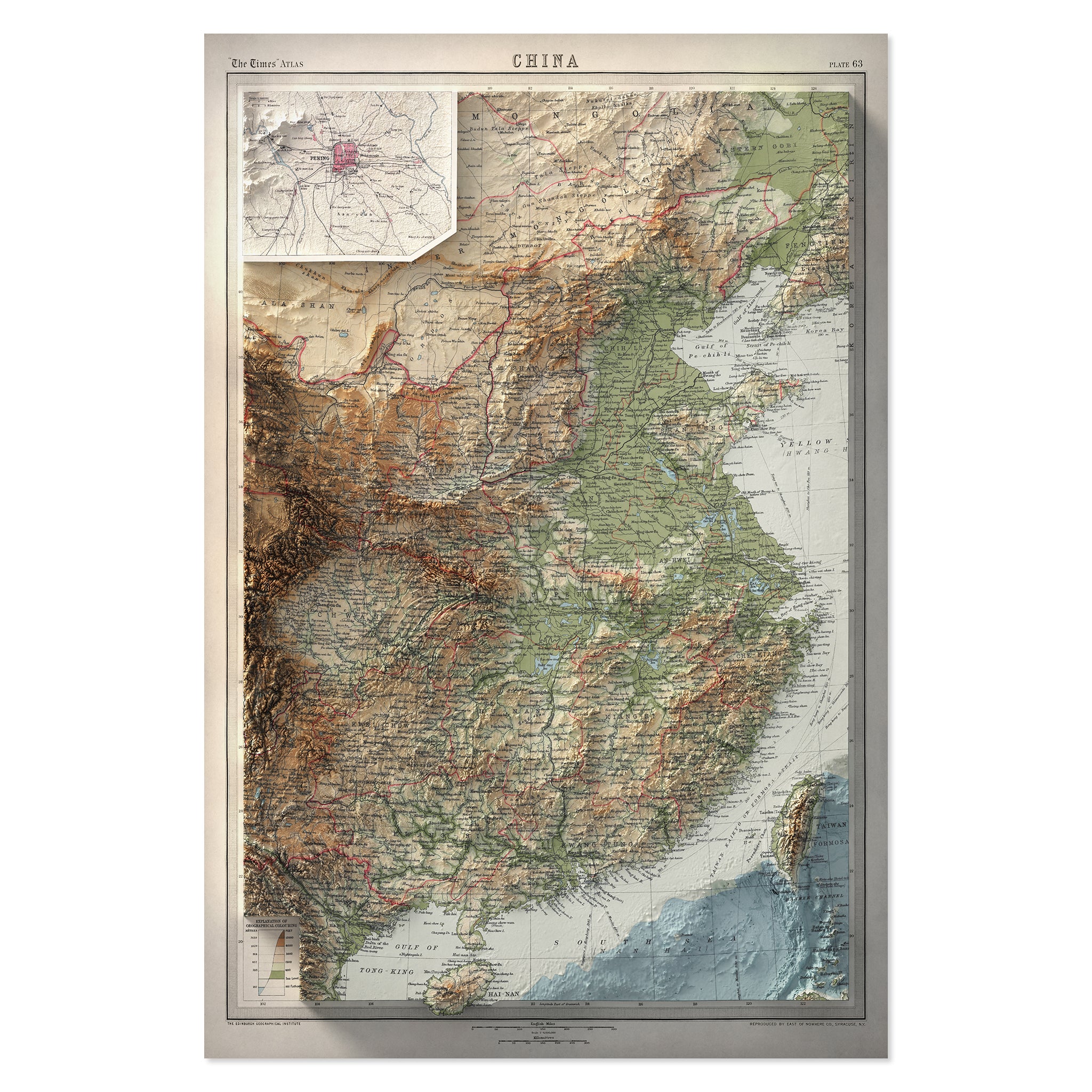 Eastern China Elevation Map | 1922 Vintage Topographic Reproduction