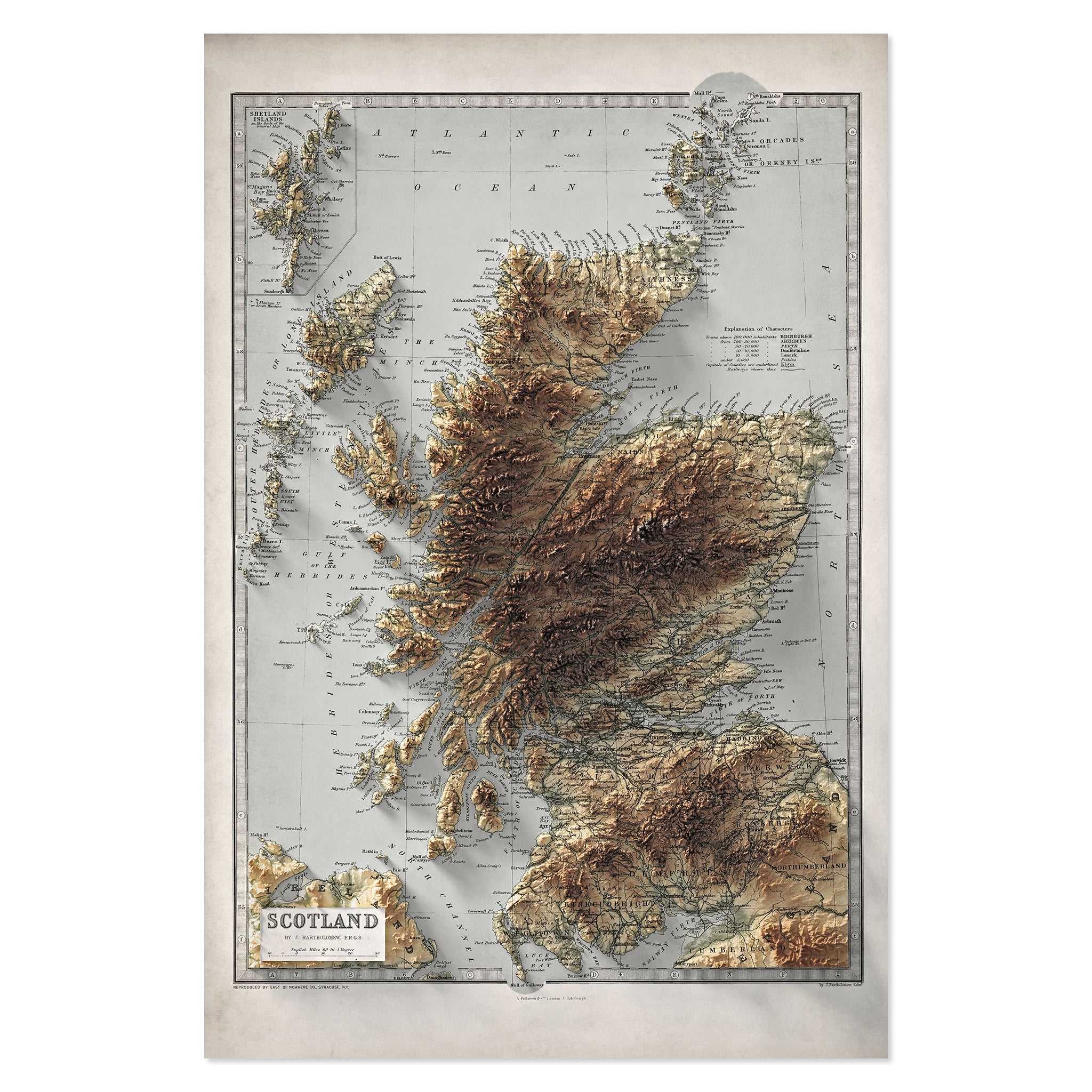 Scotland Elevation Map | 1871 Vintage Topographic Reproduction