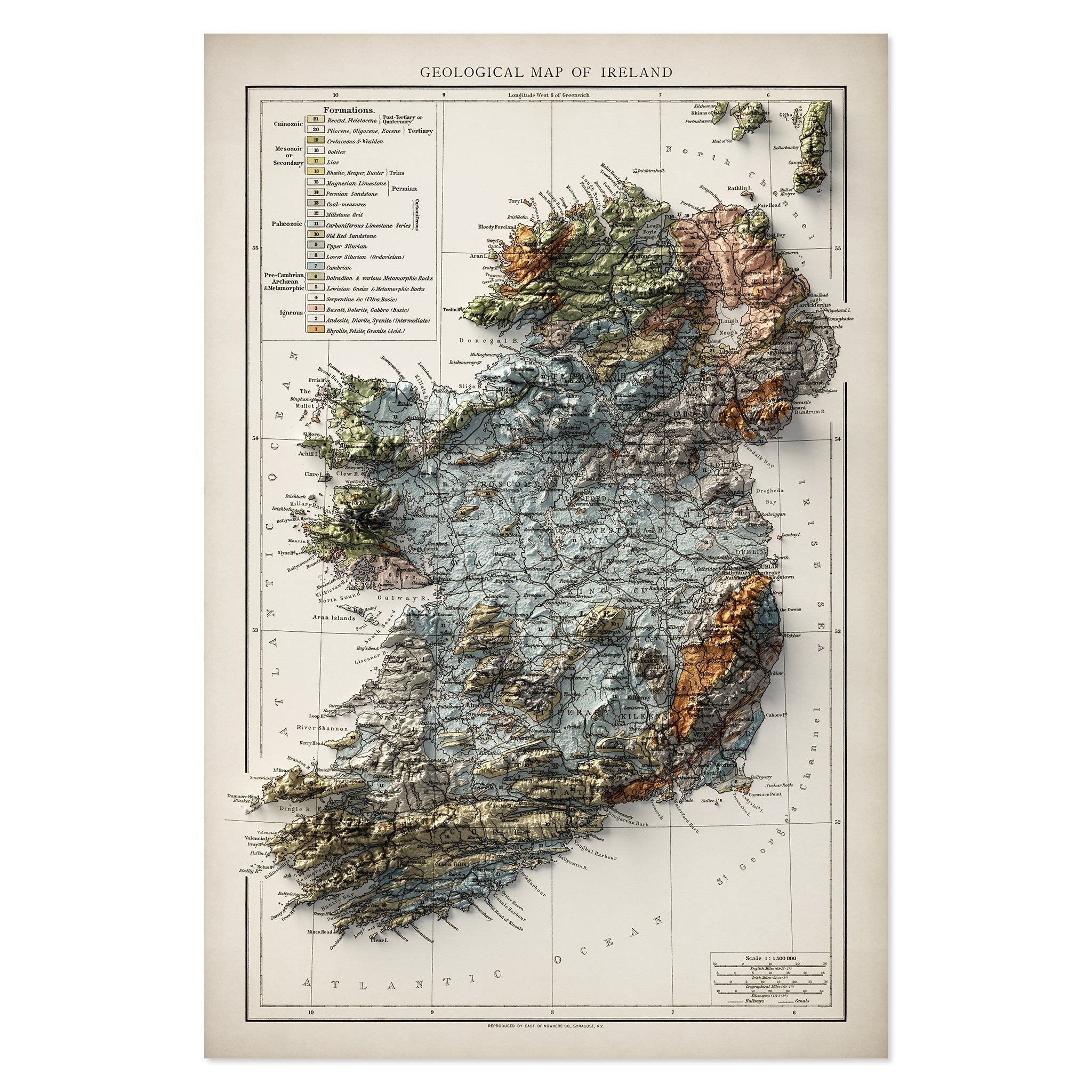 Ireland Elevation Map | 1900 Vintage Topographic Reproduction