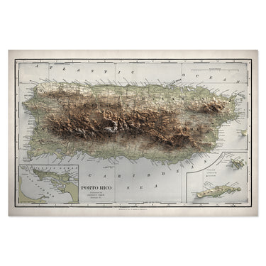 Puerto Rico Elevation Map | 1901 Vintage Topographic Reproduction