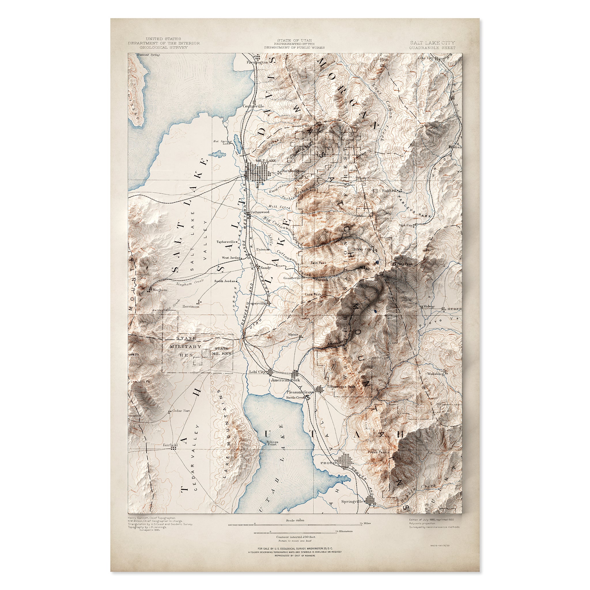 Salt Lake City, UT Elevation Map | 1885 Vintage Topographic Reproduction
