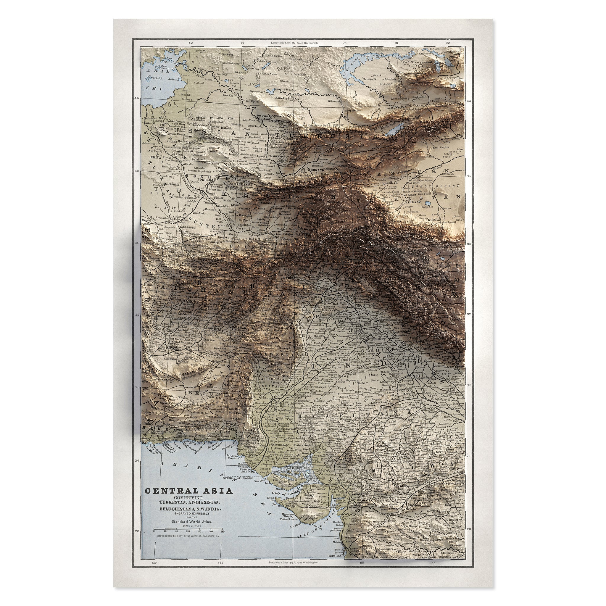 Central Asia Elevation Map | 1889 Vintage Topographic Reproduction