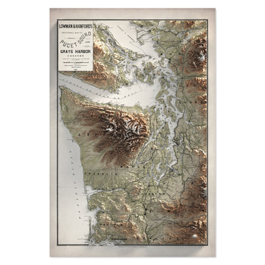 Western Washington Elevation Map | 1891 Vintage Topographic Reproduction