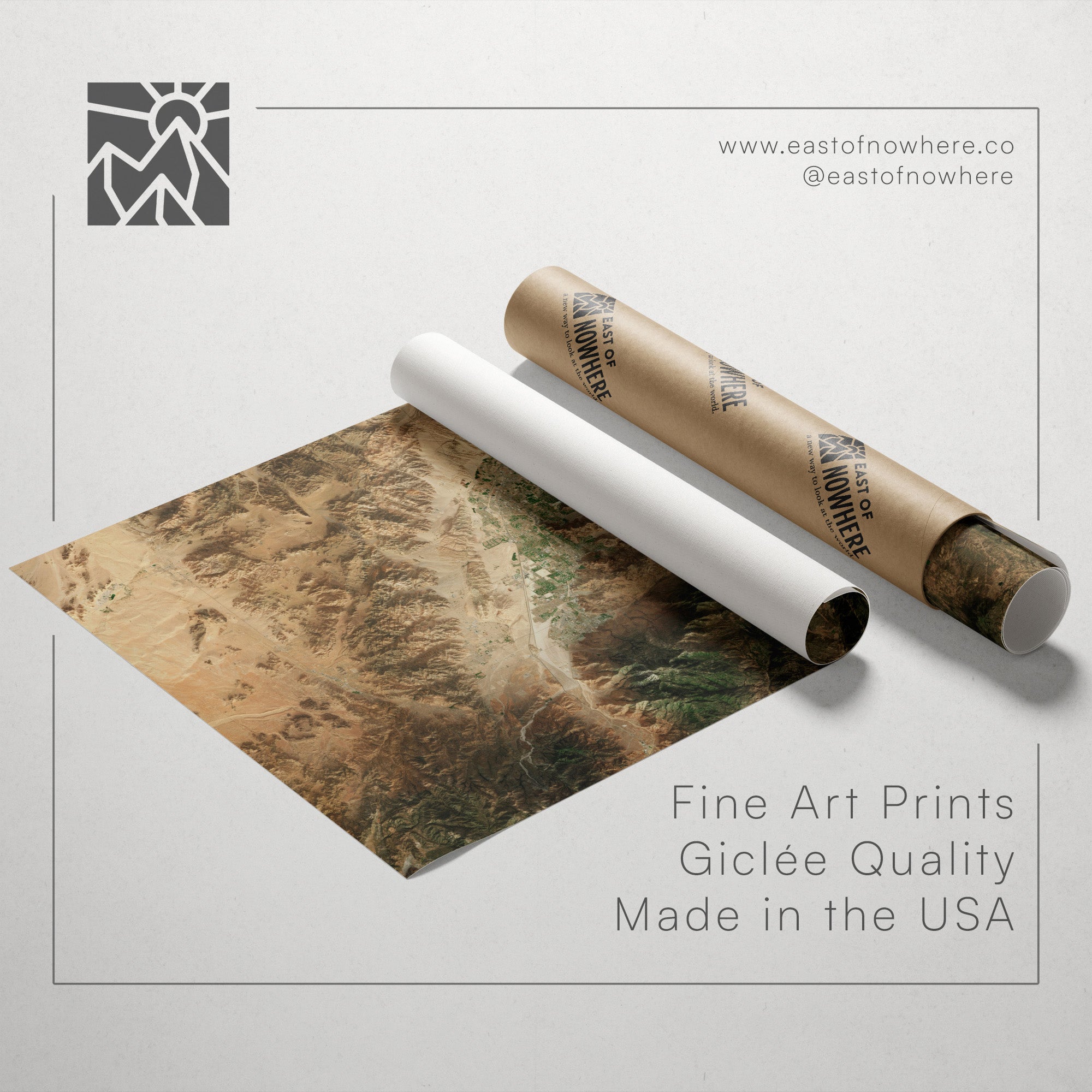 Our satellite-style elevation map posters feature a clean, text-free design that highlights the raw beauty of the landscape. Created using real satellite imagery and topographic data, each map is enhanced with 3D rendering to produce a dramatic shaded relief effect and a striking optical illusion of raised terrain. These original designs are printed as high-resolution giclee art prints on archival-quality paper, offering a bold, modern take on wall art. Perfect for framing, they bring natural elegance and a sense of place to any home decor.