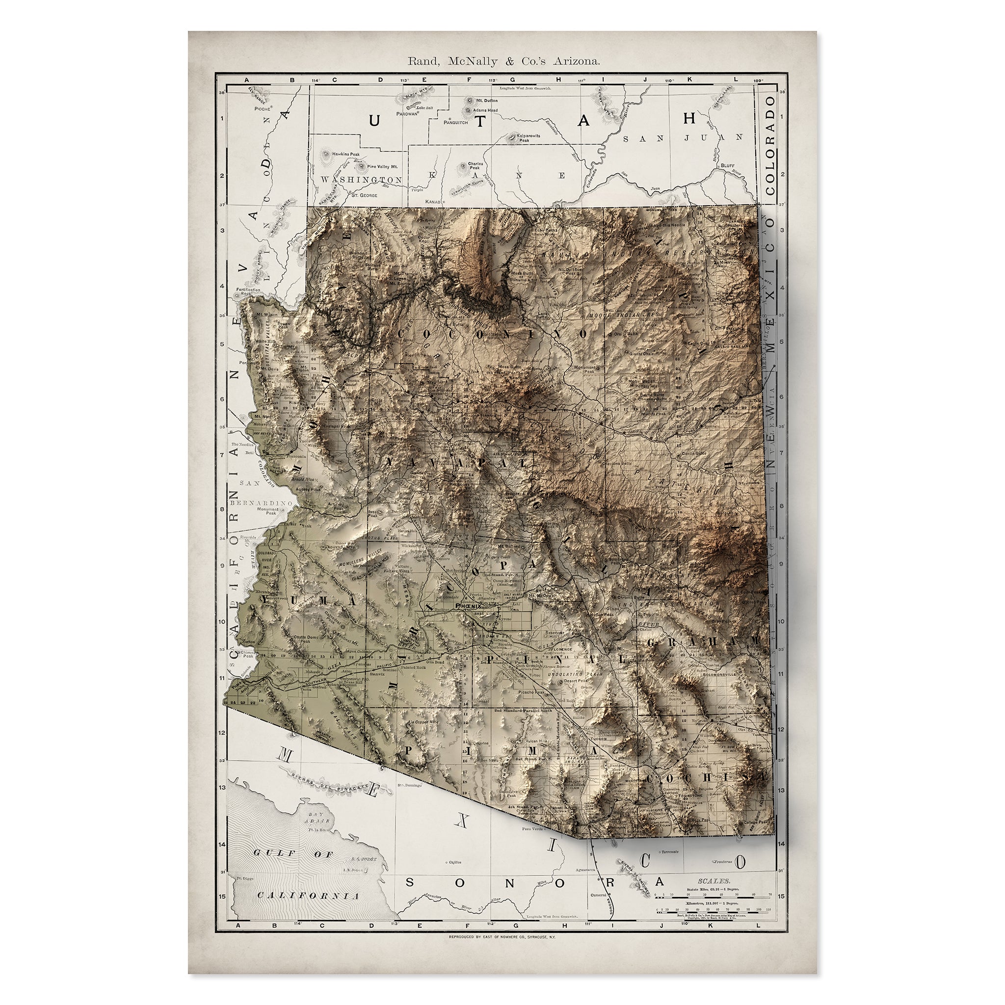 Arizona Elevation Map | 1893 Vintage Topographic Reproduction