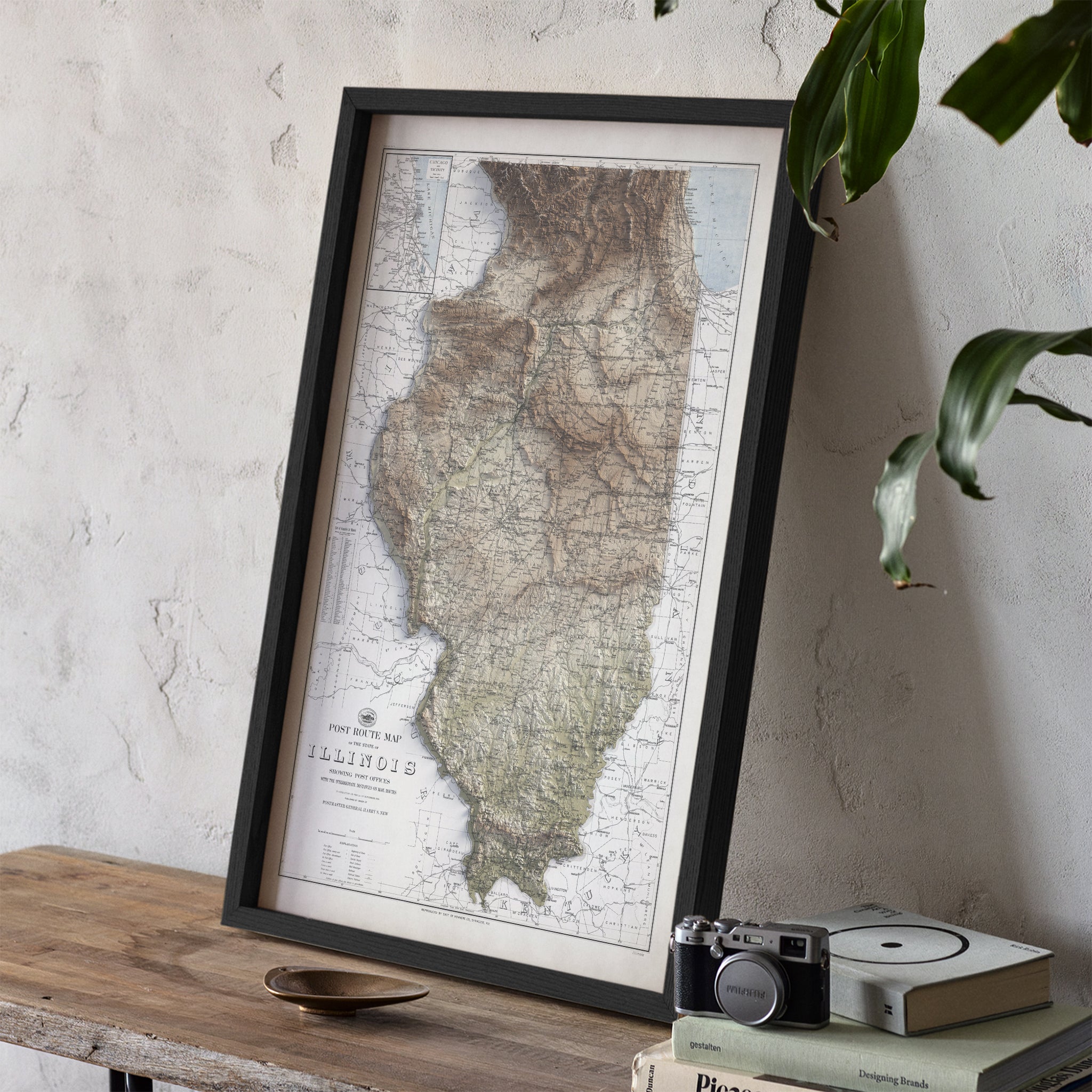 Discover our vintage elevation map posters, authentic reproduction of historic map prints enhanced with modern techniques like colorization and 3D rendering. These giclee art prints feature a stunning optical illusion that mimics raised terrain, creating the look of real topography on your wall. Printed on archival-quality paper, each relief map blends classic cartography with contemporary design, making it perfect for framing as wall art or adding a distinctive touch to your home decor.