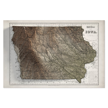 Iowa Elevation Map | 1874 Vintage Topographic Reproduction