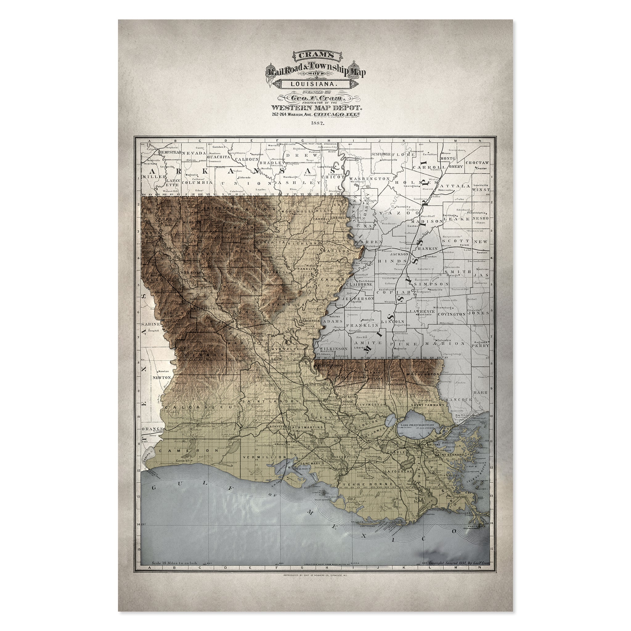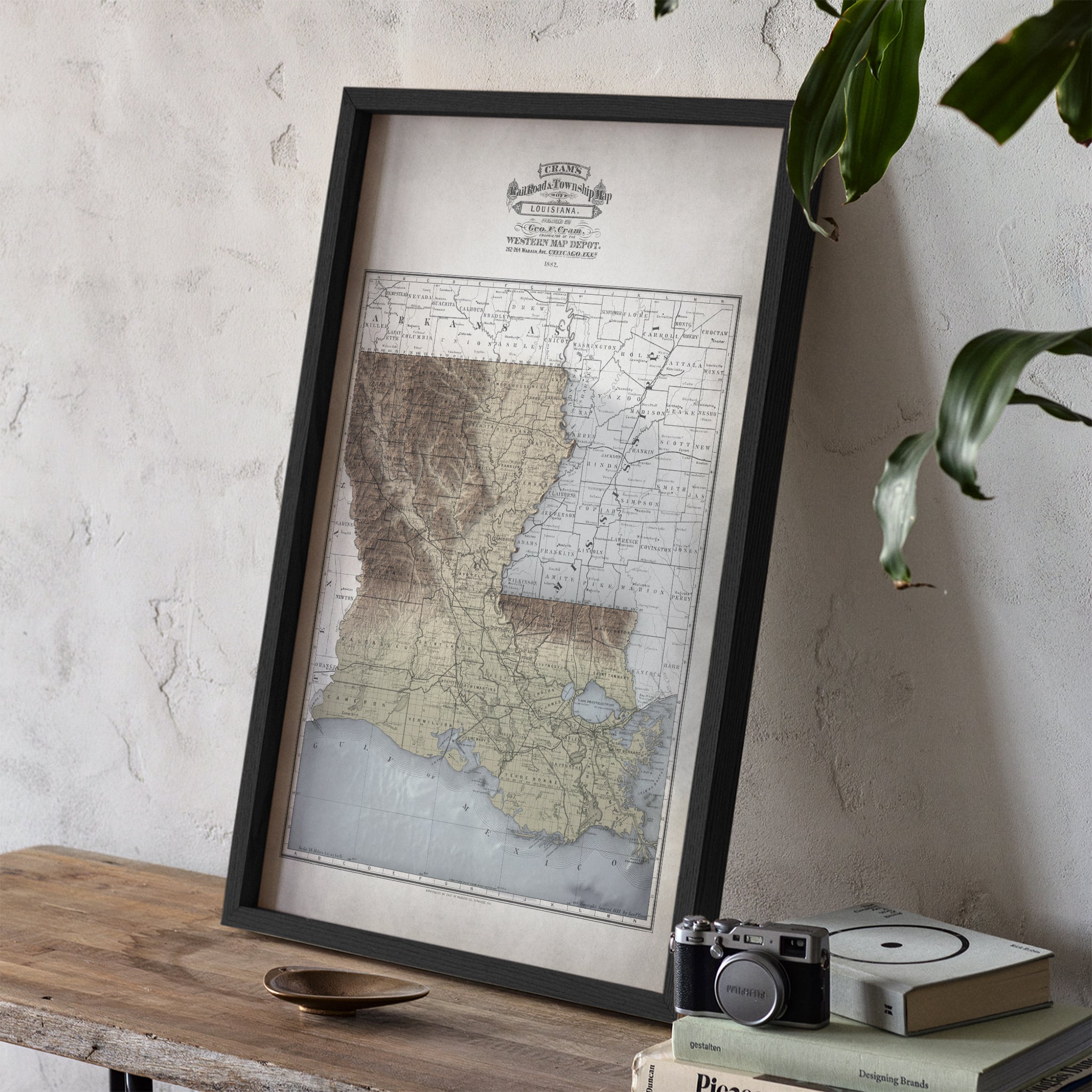 Louisiana Elevation Map | 1882 Vintage Topographic Reproduction