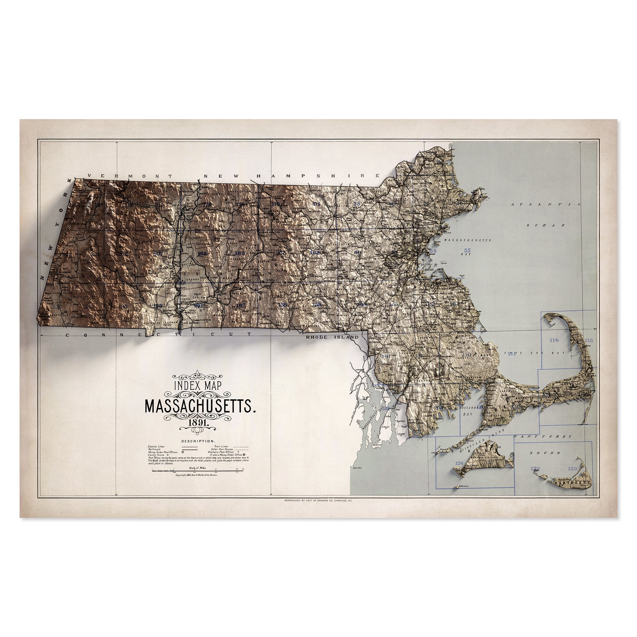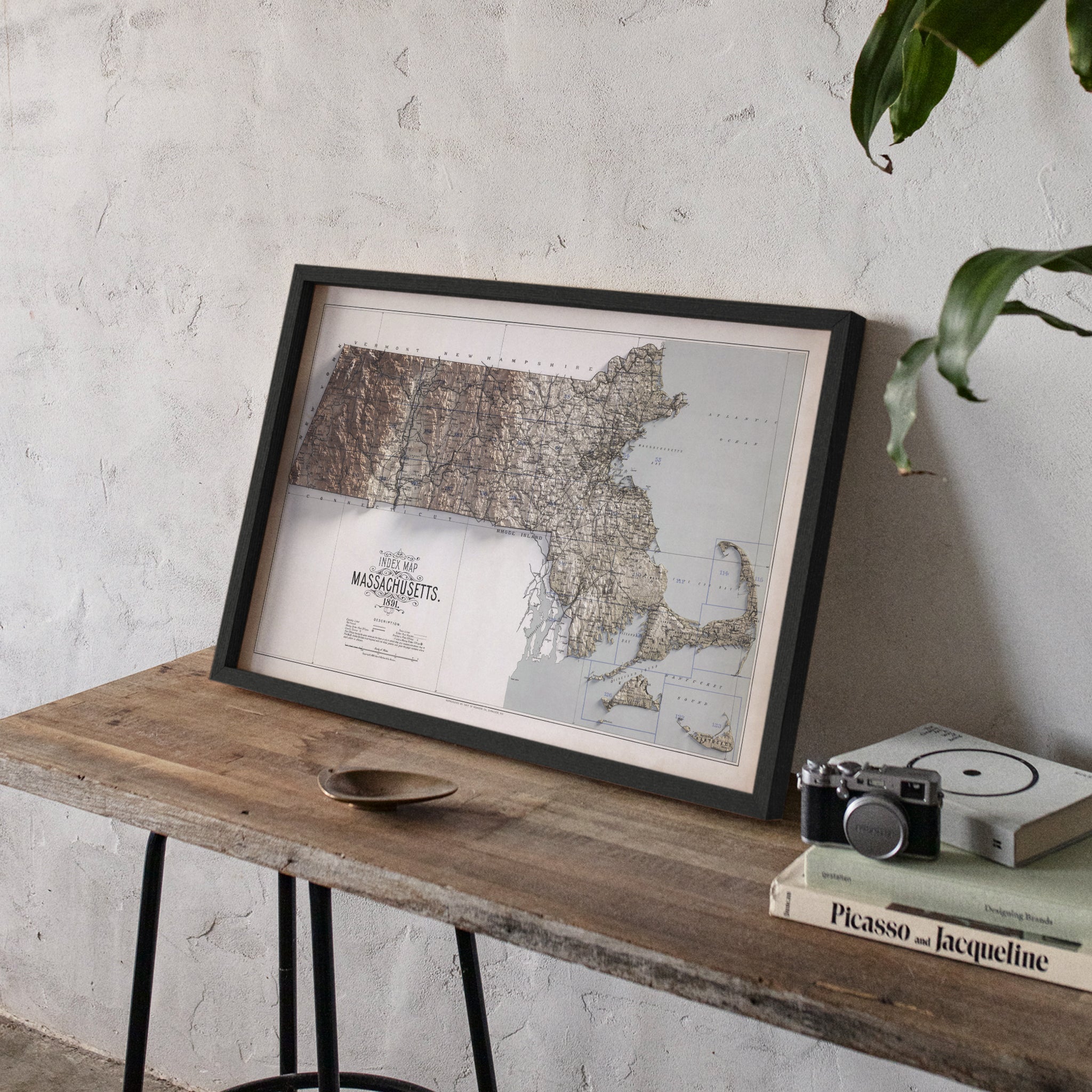 Massachusetts Elevation Map | 1891 Vintage Topographic Reproduction