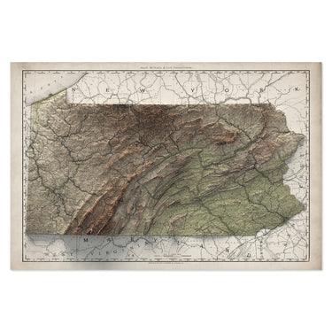 Pennsylvania Elevation Map | 1889 Vintage Topographic Reproduction