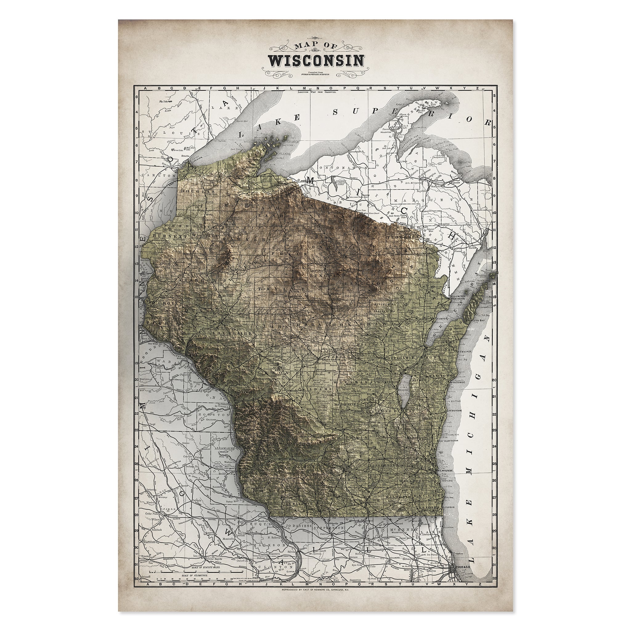 Wisconsin Elevation Map | 1889 Vintage Topographic Reproduction
