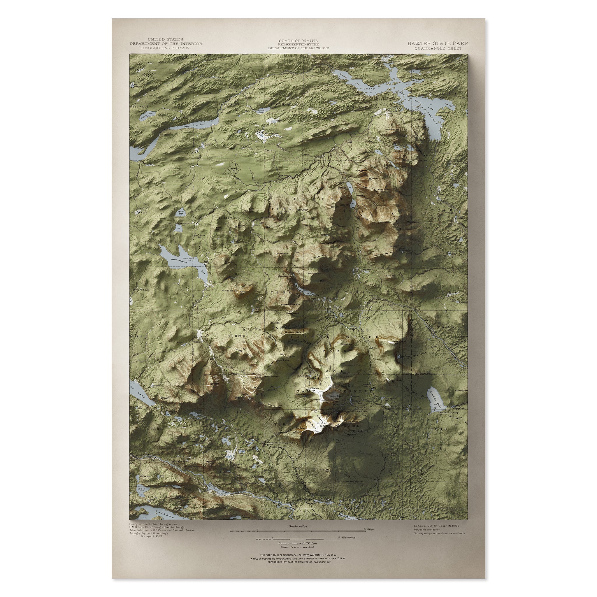 Baxter State Park Elevation Map | 1949 Vintage Topographic Reproduction