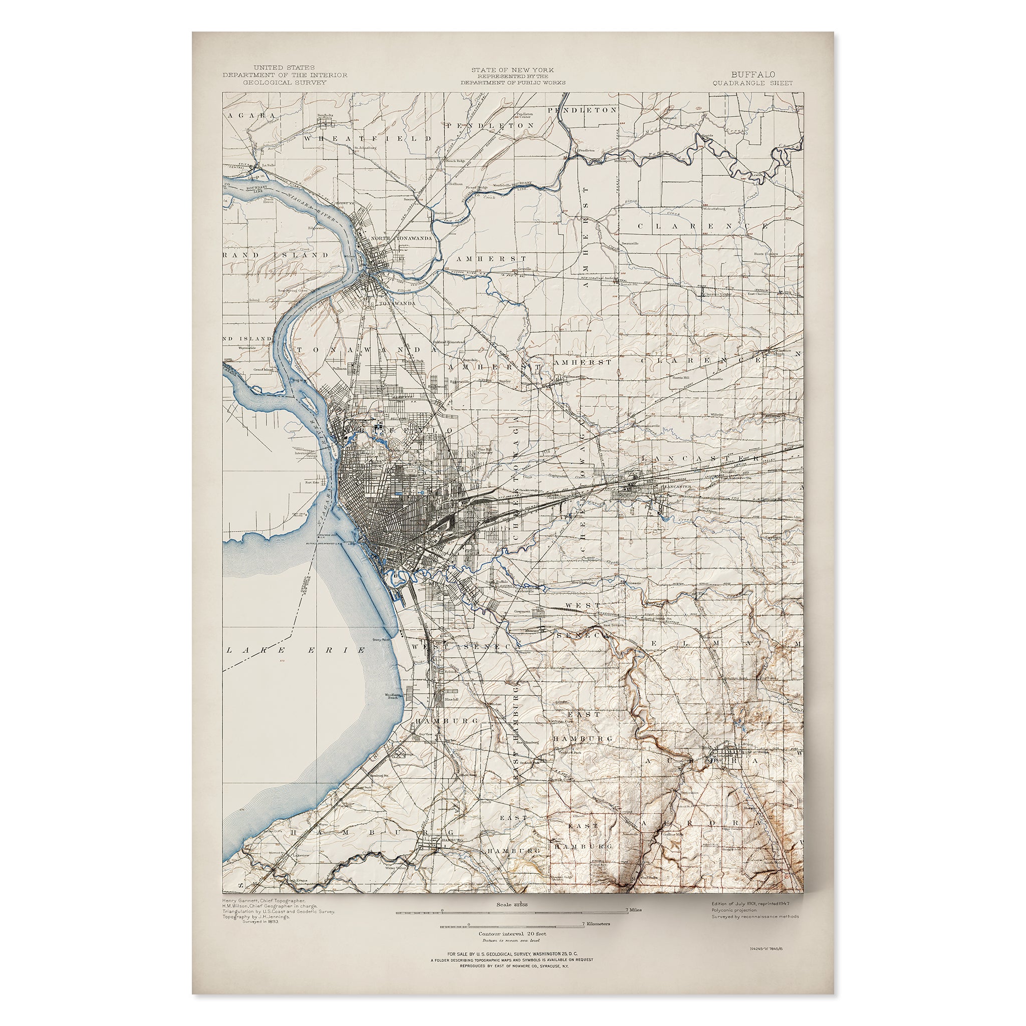 Buffalo, NY Elevation Map | 1901 Vintage Topographic Reproduction