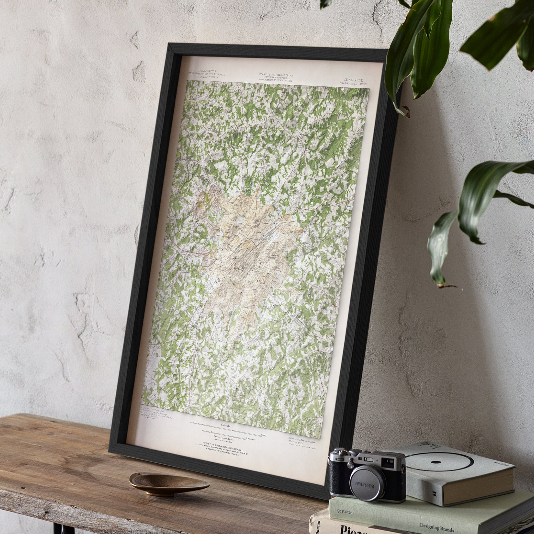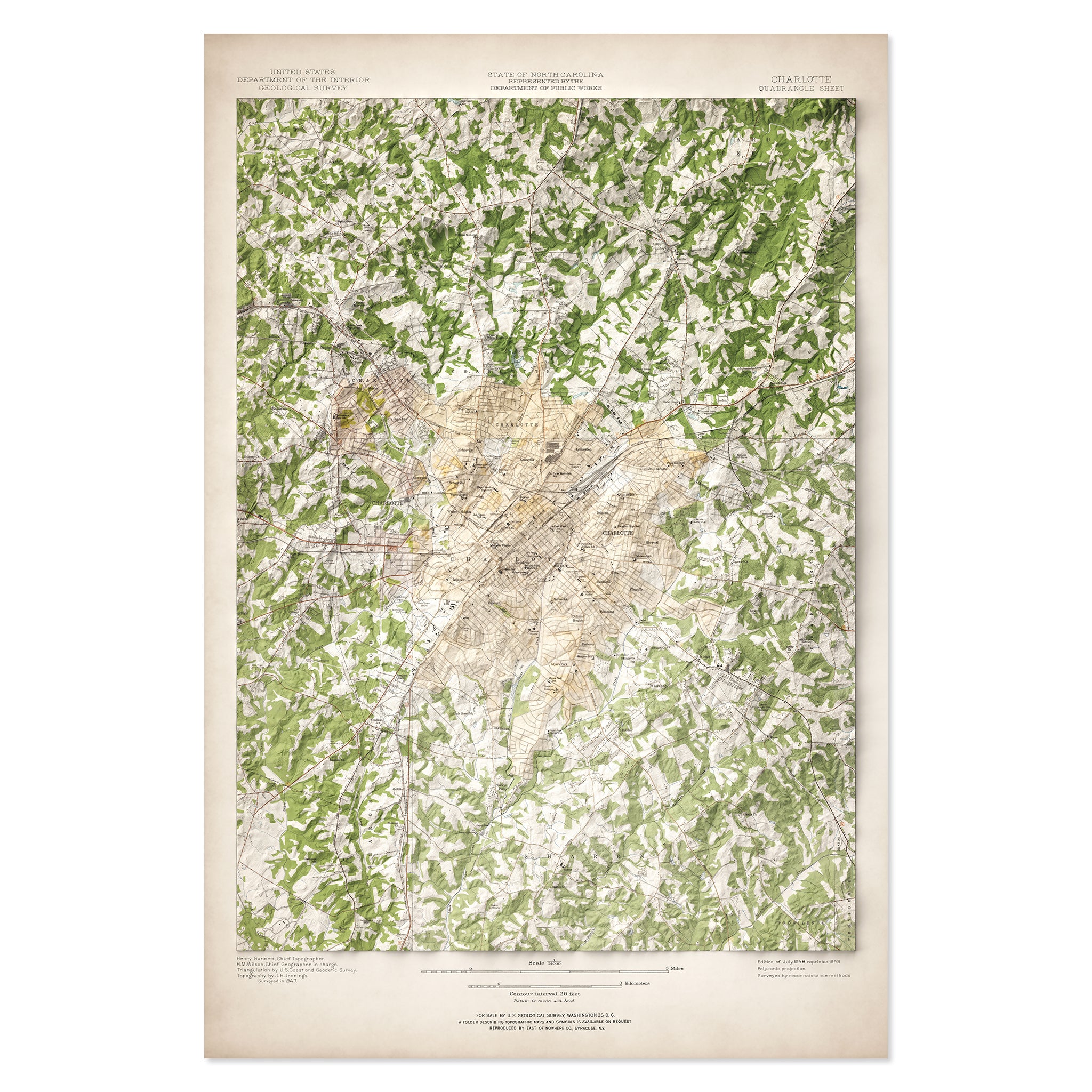 Charlotte, NC Elevation Map | 1948 Vintage Topographic Reproduction