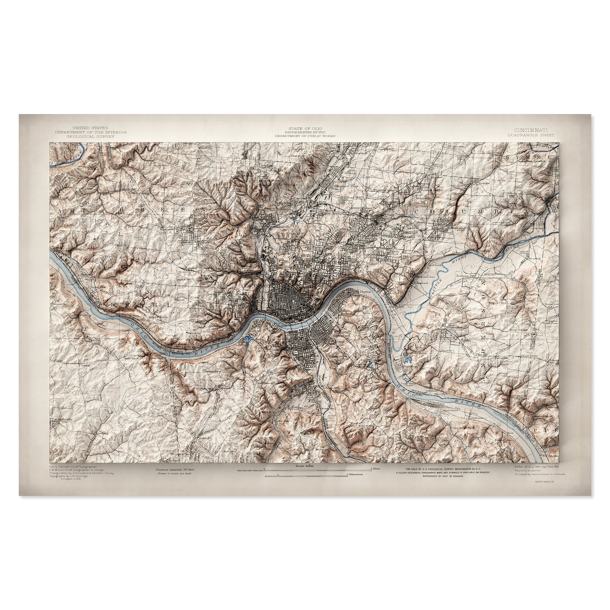Cincinnati, OH Elevation Map | 1914 Vintage Topographic Reproduction