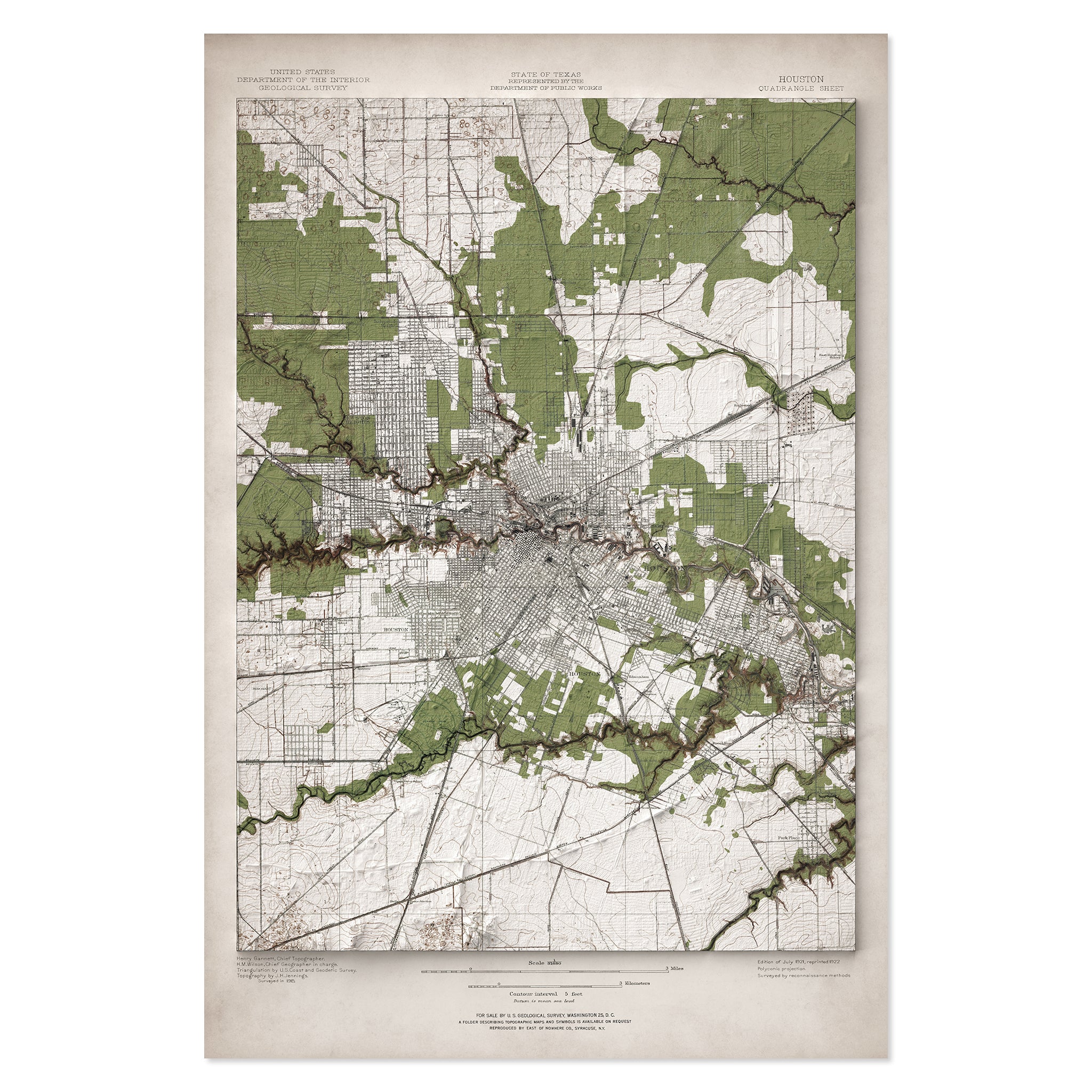 Houston, TX Elevation Map | 1921 Vintage Topographic Reproduction