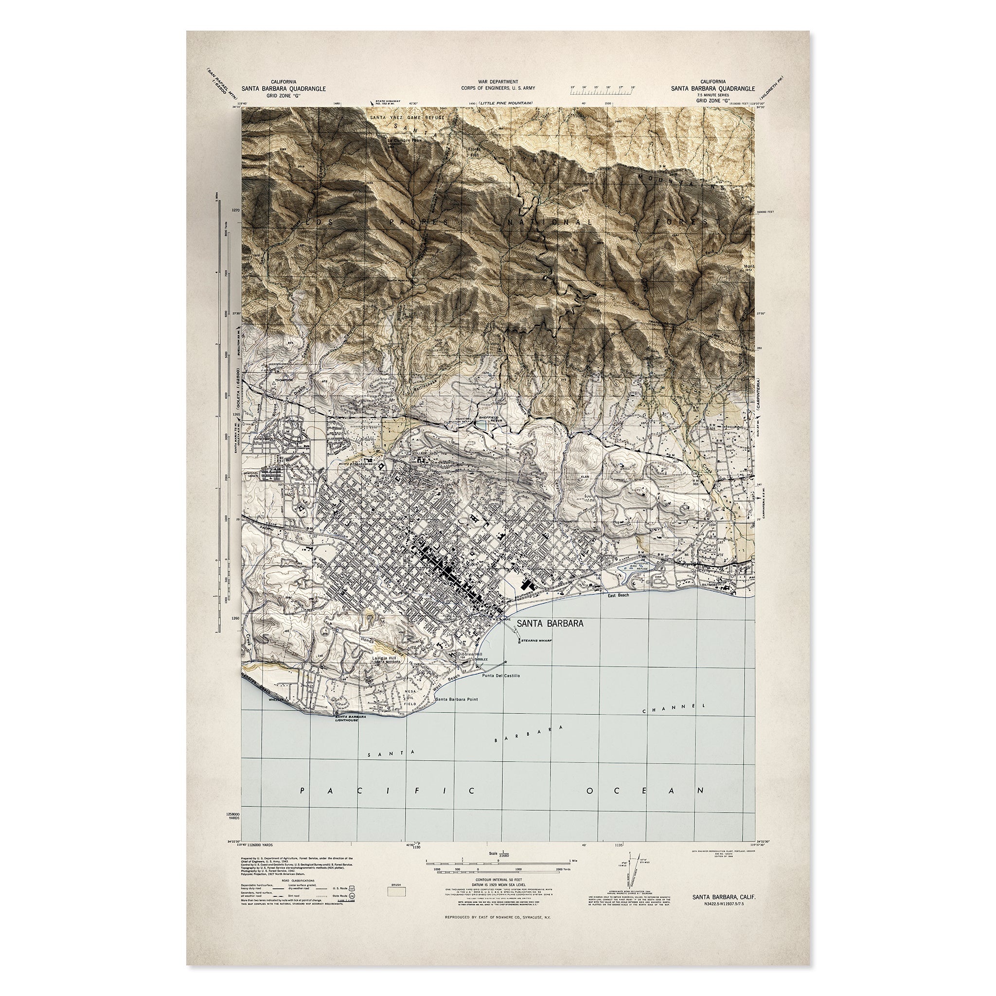 Santa Barbara, CA Elevation Map | 1944 Vintage Topographic Reproduction