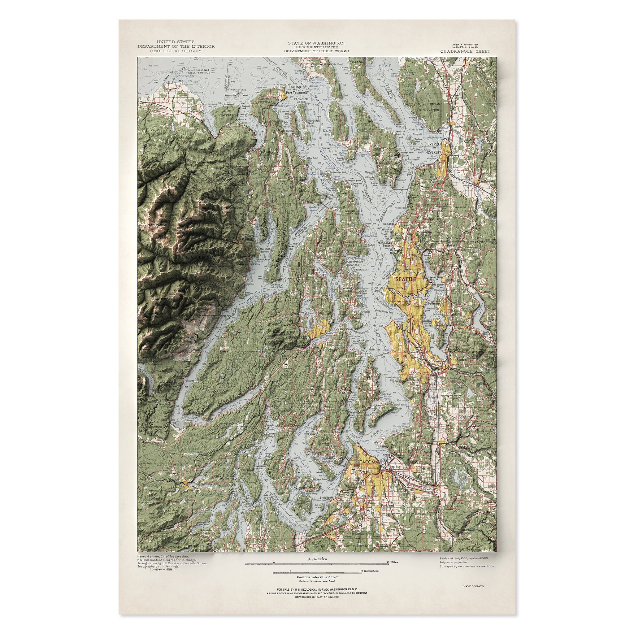 Seattle, WA Elevation Map | 1965 Vintage Topographic Reproduction