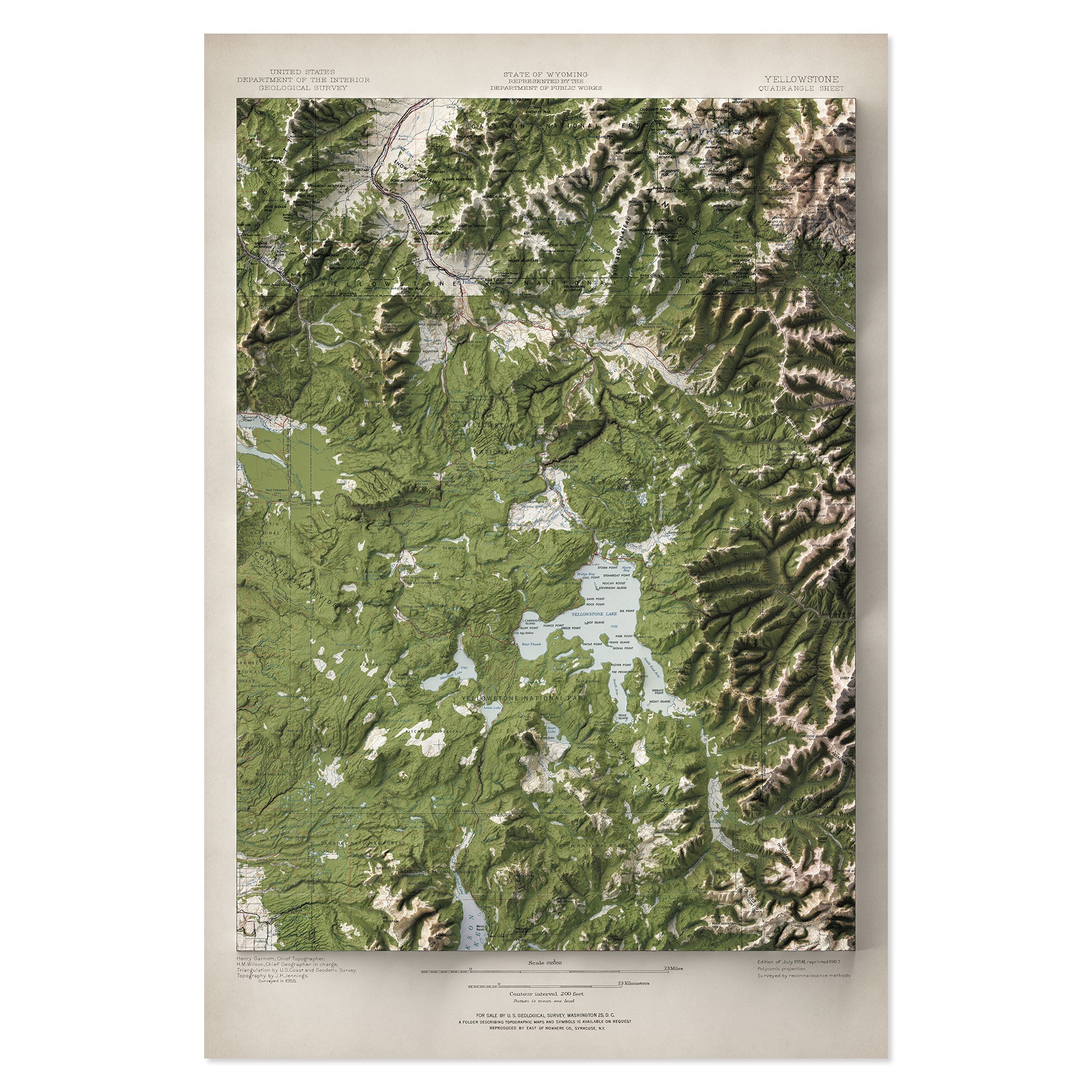 Yellowstone Elevation Map | 1958 Vintage Topographic Reproduction
