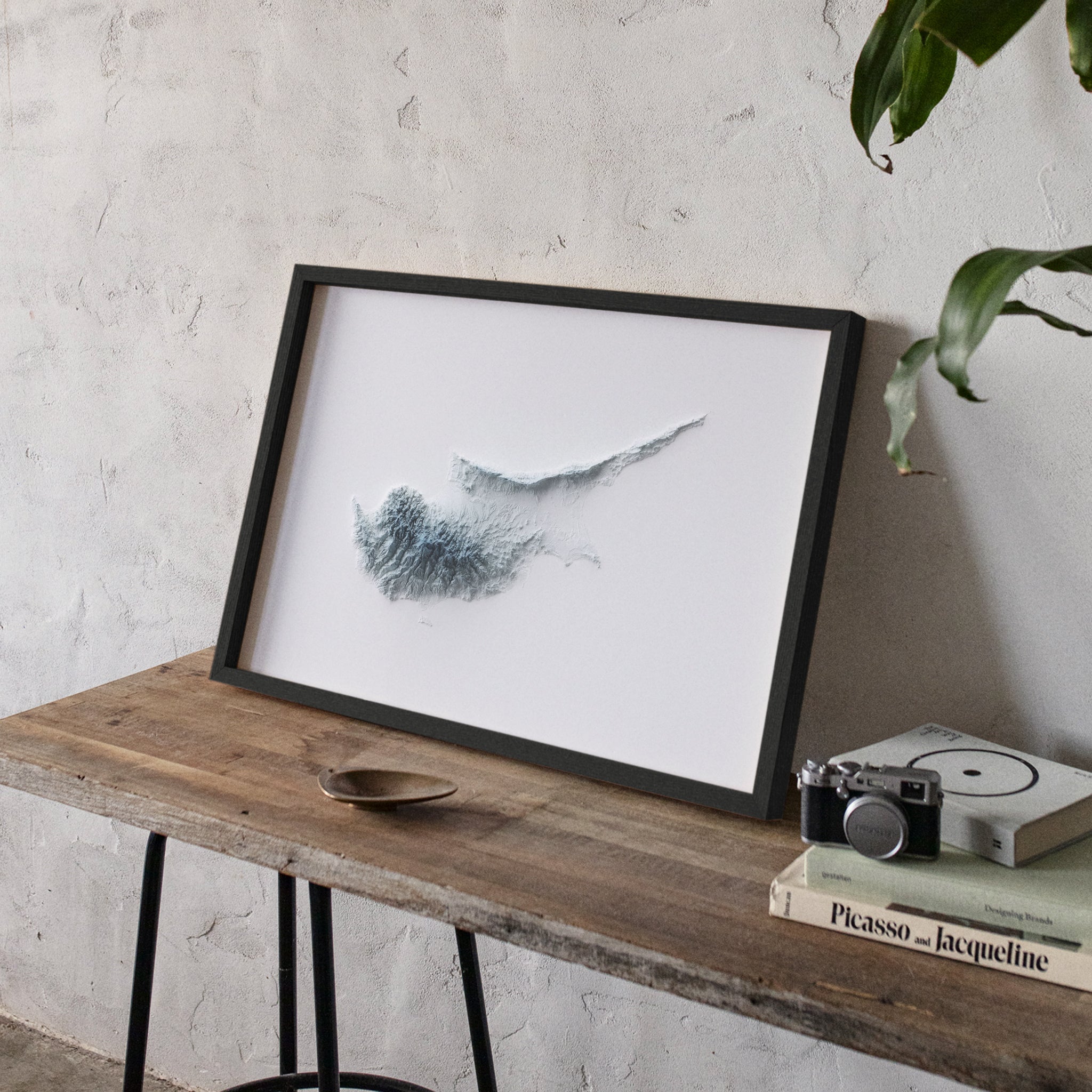 Our minimalist elevation map posters are original designs created using real satellite topographic data and advanced 3D rendering techniques. Each map features exaggerated terrain and dramatic shading to highlight the natural contours of the landscape, producing a striking optical illusion that appears three-dimensional. Printed as high-quality giclée art prints, these modern relief maps bring a clean, bold aesthetic to any space. Perfect for framing and they make for distinctive wall art for a refined addition to your home decor.