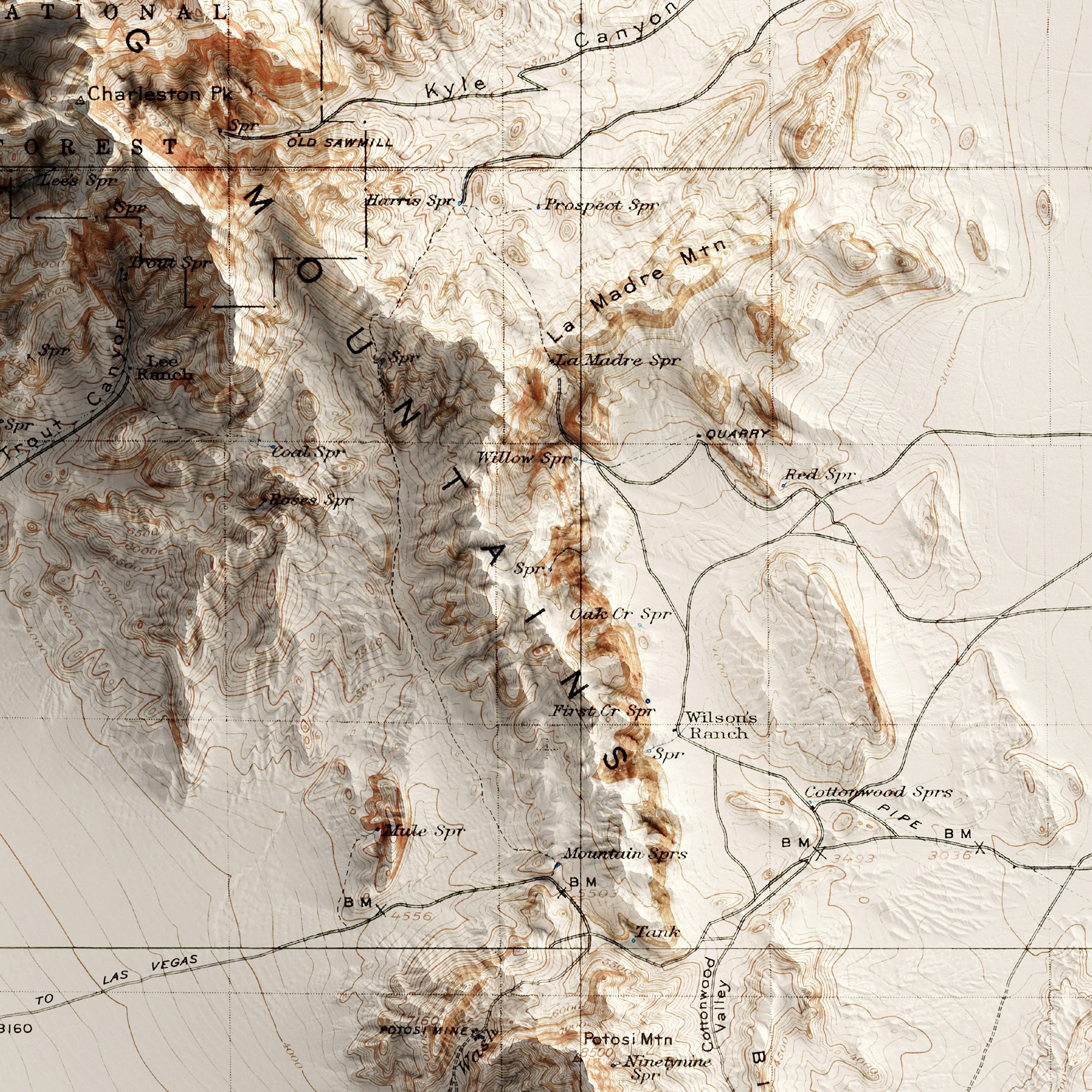 Red Rock Canyon, NV Elevation Map | 1907 Vintage Topographic Reproduction