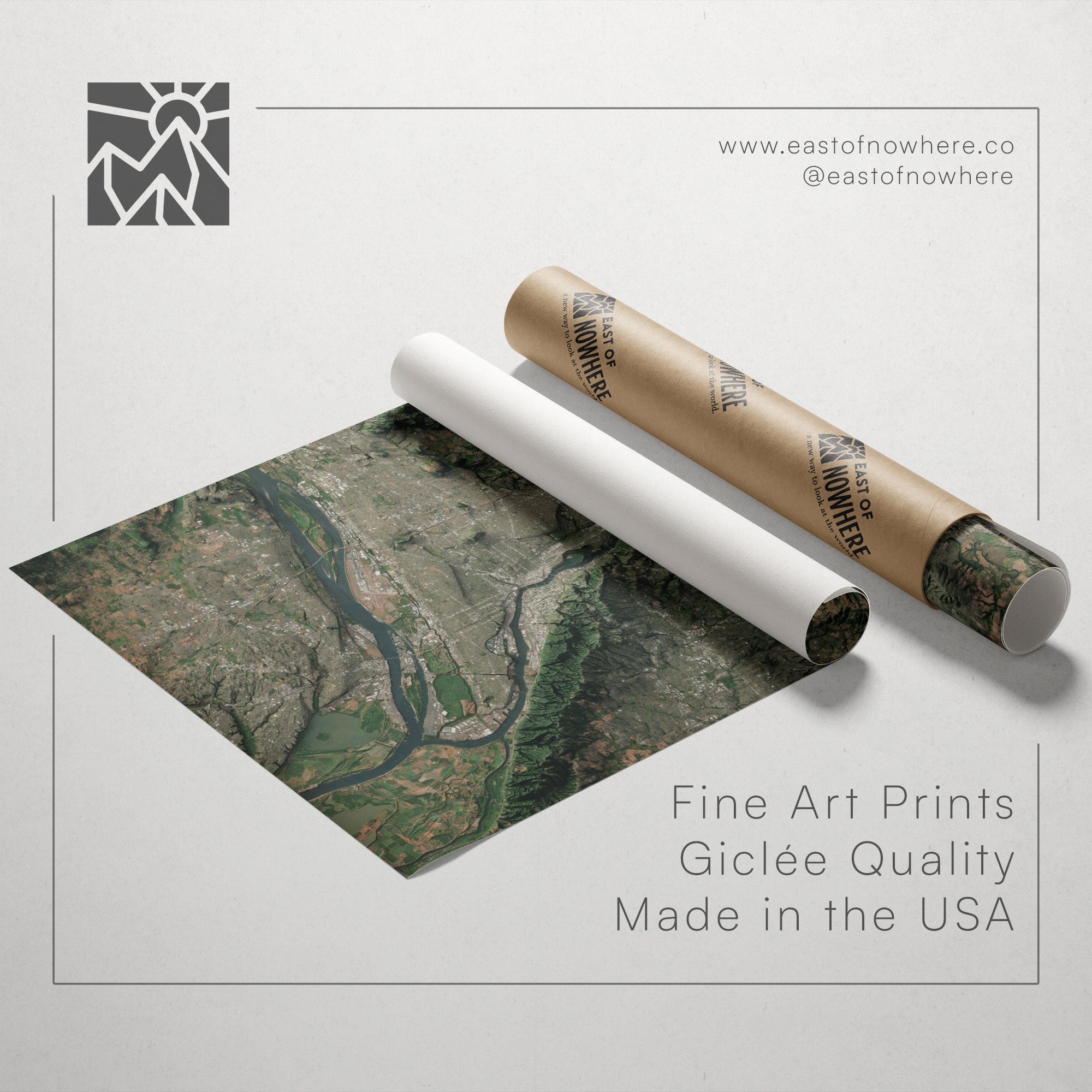 Our satellite-style elevation map posters feature a clean, text-free design that highlights the raw beauty of the landscape. Created using real satellite imagery and topographic data, each map is enhanced with 3D rendering to produce a dramatic shaded relief effect and a striking optical illusion of raised terrain. These original designs are printed as high-resolution giclee art prints on archival-quality paper, offering a bold, modern take on wall art. Perfect for framing, they bring natural elegance and a sense of place to any home decor.