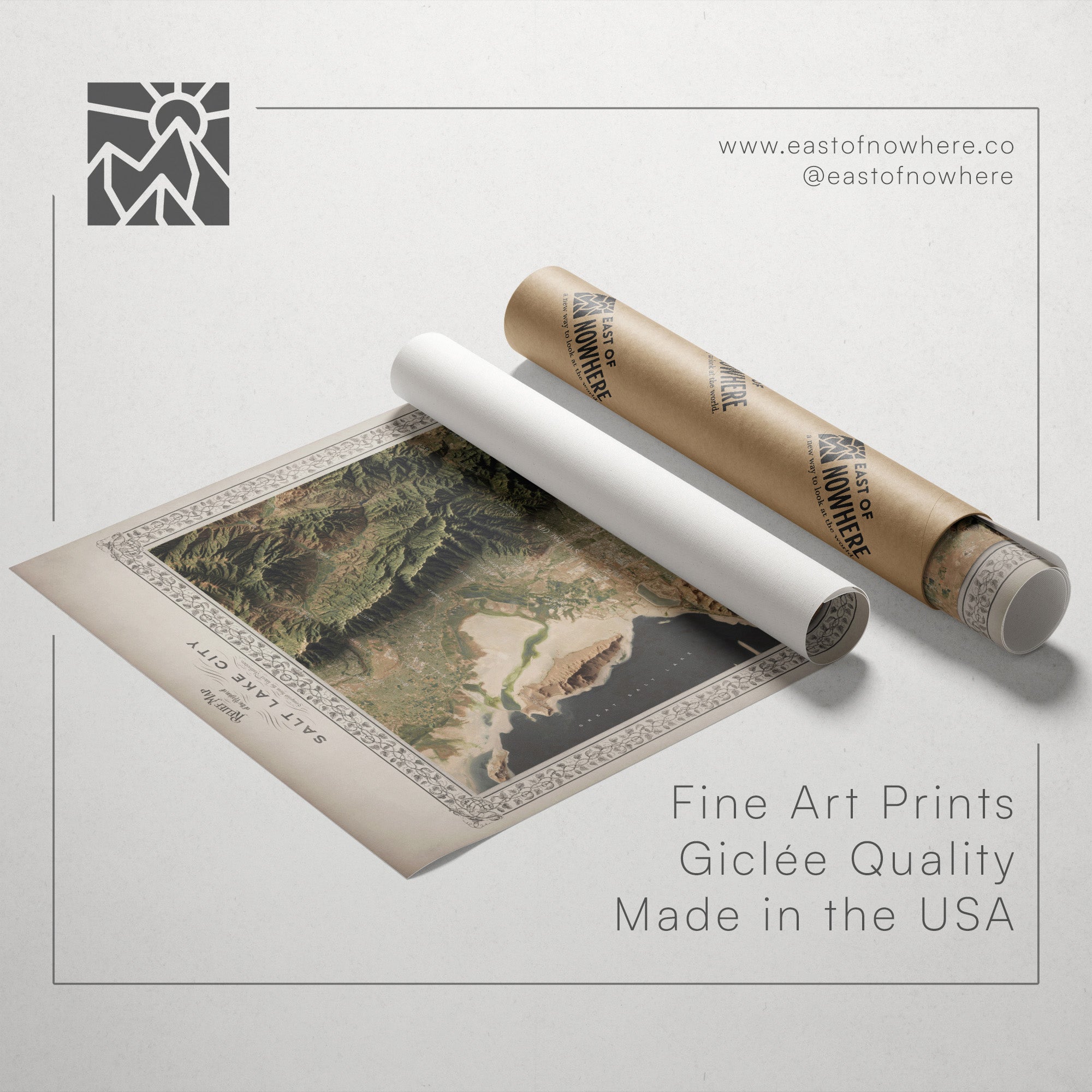 Our atlas-style elevation map posters are original designs inspired by the look and feel of antique atlas pages. Combining modern topographic data and labeling with vintage-inspired styling, these maps blend old-world charm with contemporary accuracy. Each piece is rendered using advanced 3D techniques to create a dramatic shaded relief effect, producing a striking optical illusion of raised terrain. Printed as archival-quality giclée art prints, they offer timeless wall art that’s perfect for framing and elevating your home decor with a touch of history.