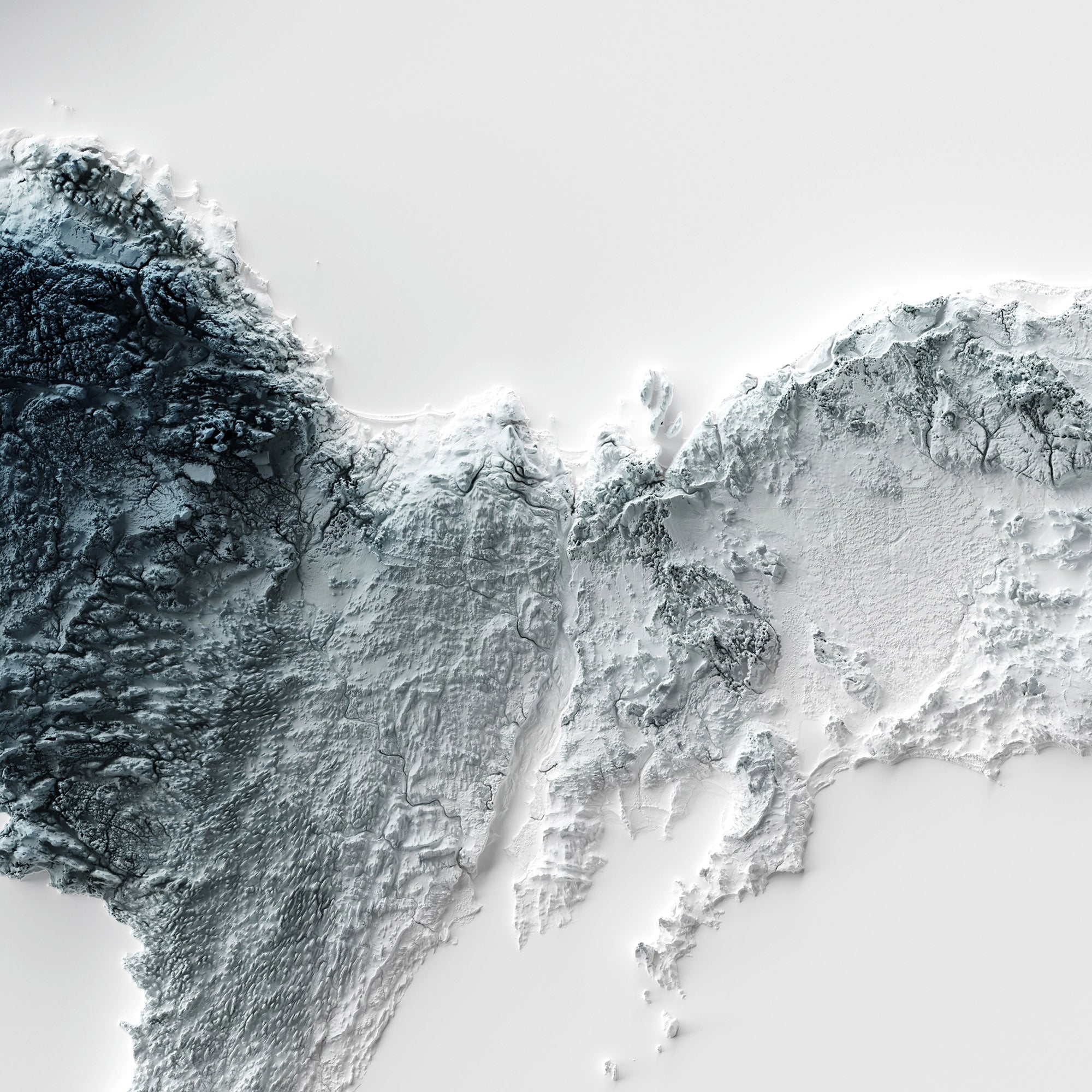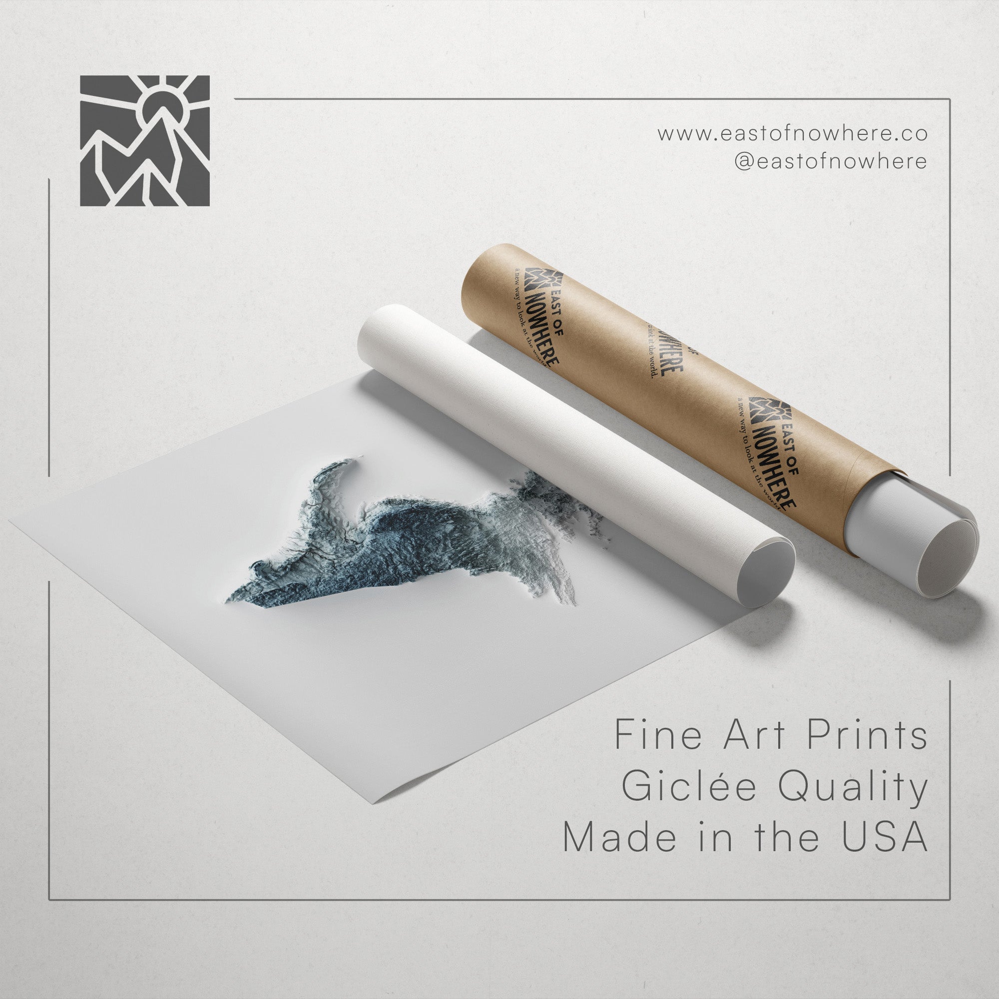 Our minimalist elevation map posters are original designs created using real satellite topographic data and advanced 3D rendering techniques. Each map features exaggerated terrain and dramatic shading to highlight the natural contours of the landscape, producing a striking optical illusion that appears three-dimensional. Printed as high-quality giclée art prints, these modern relief maps bring a clean, bold aesthetic to any space. Perfect for framing and they make for distinctive wall art for a refined addition to your home decor.
