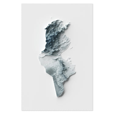 Tunisia Elevation Map | Minimalist Style Topographic Relief