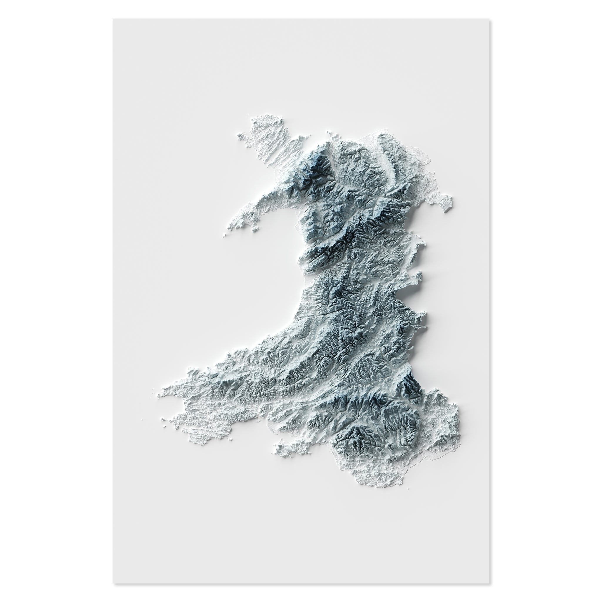 Wales Elevation Map | Minimalist Style Topographic Relief
