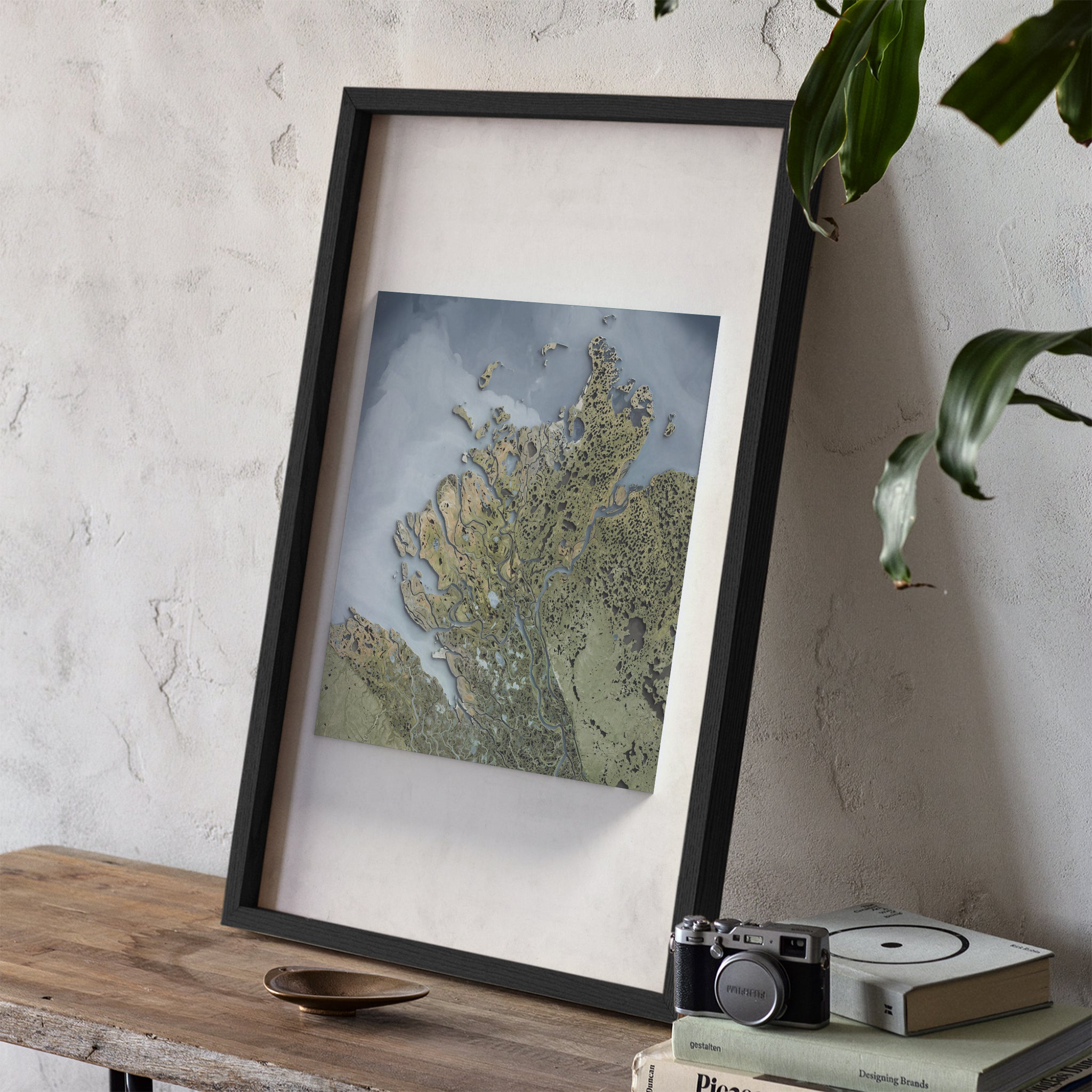 Our satellite-style elevation map posters feature a clean, text-free design that highlights the raw beauty of the landscape. Created using real satellite imagery and topographic data, each map is enhanced with 3D rendering to produce a dramatic shaded relief effect and a striking optical illusion of raised terrain. These original designs are printed as high-resolution giclee art prints on archival-quality paper, offering a bold, modern take on wall art. Perfect for framing, they bring natural elegance and a sense of place to any home decor.