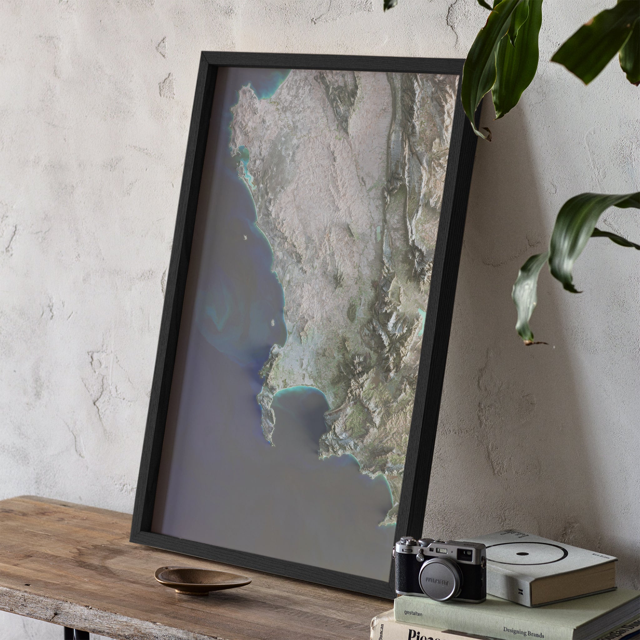 Our satellite-style elevation map posters feature a clean, text-free design that highlights the raw beauty of the landscape. Created using real satellite imagery and topographic data, each map is enhanced with 3D rendering to produce a dramatic shaded relief effect and a striking optical illusion of raised terrain. These original designs are printed as high-resolution giclee art prints on archival-quality paper, offering a bold, modern take on wall art. Perfect for framing, they bring natural elegance and a sense of place to any home decor.