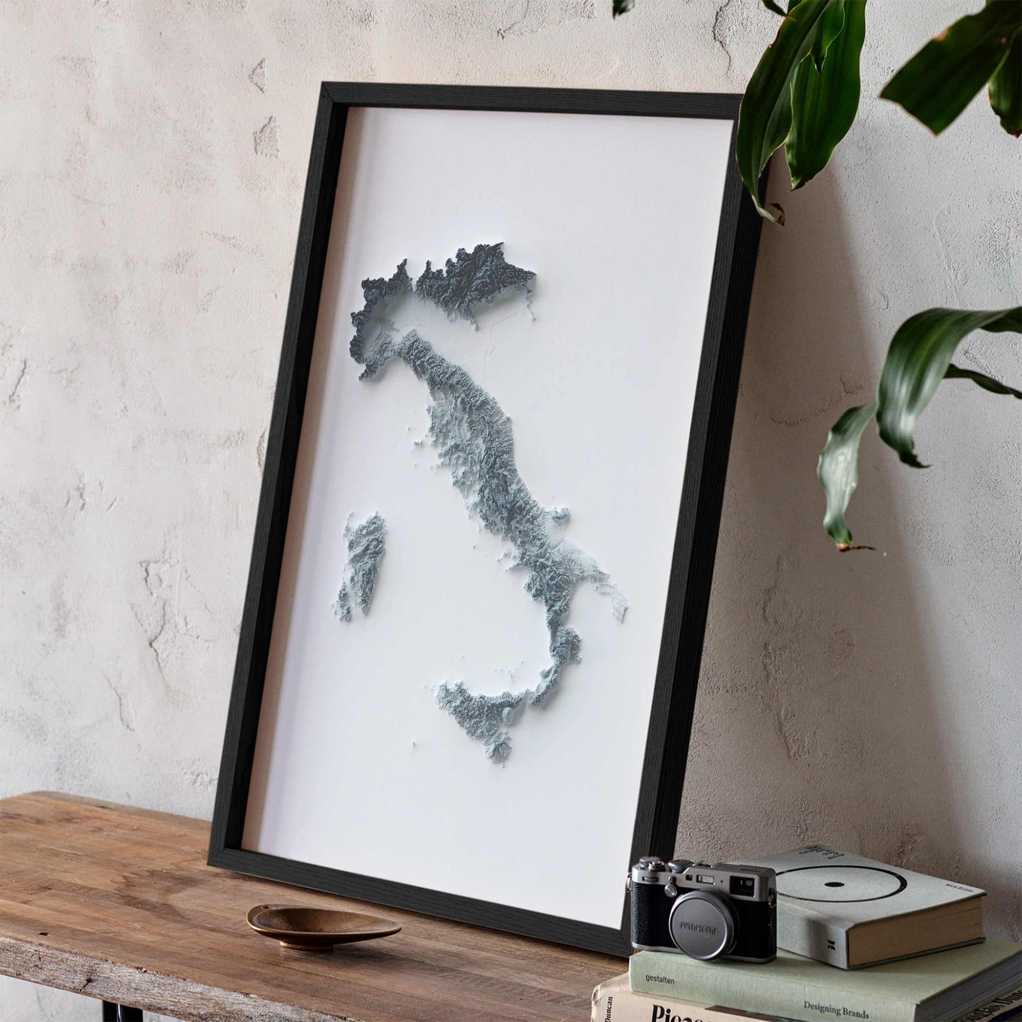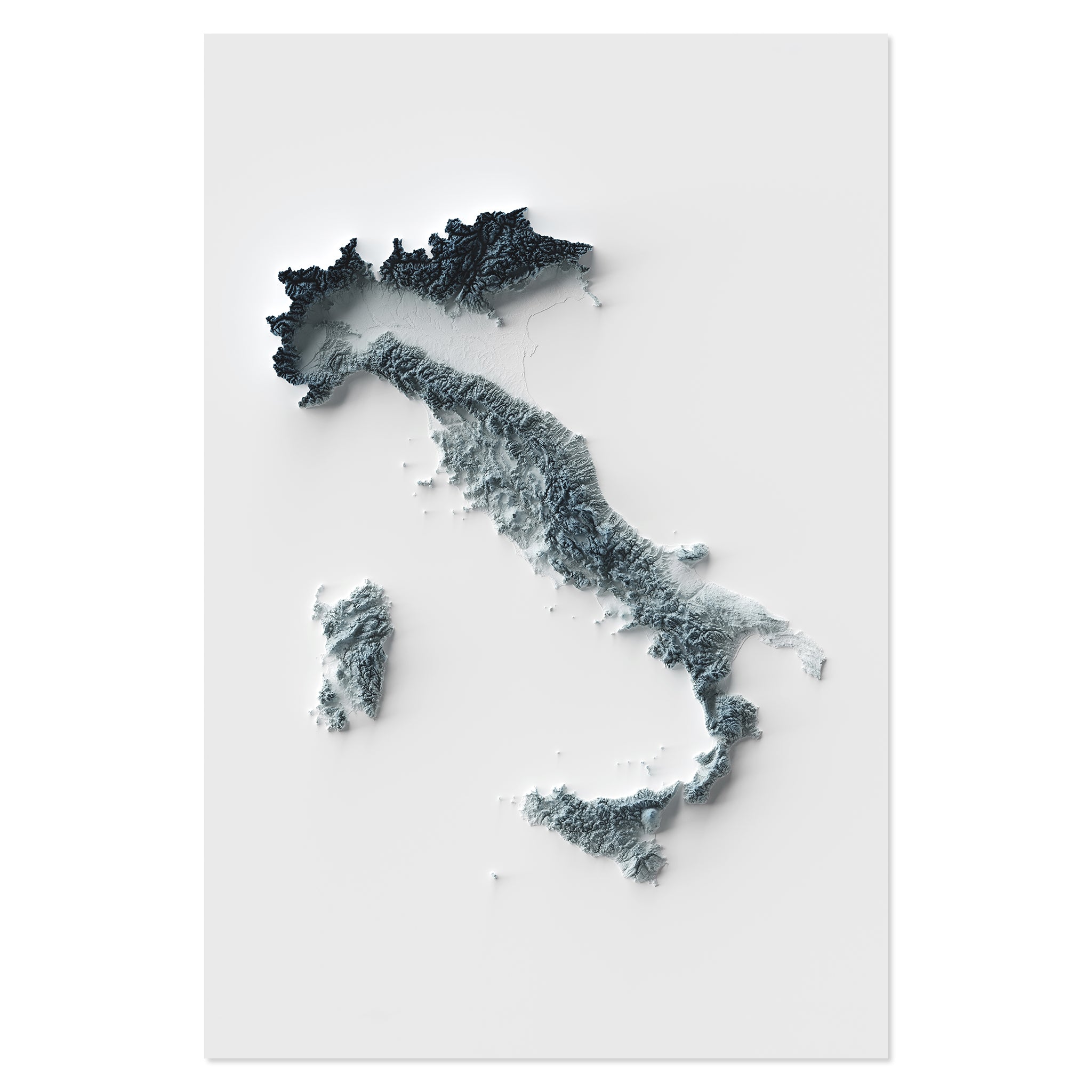 Italy Elevation Map | Minimalist Style Topographic Relief