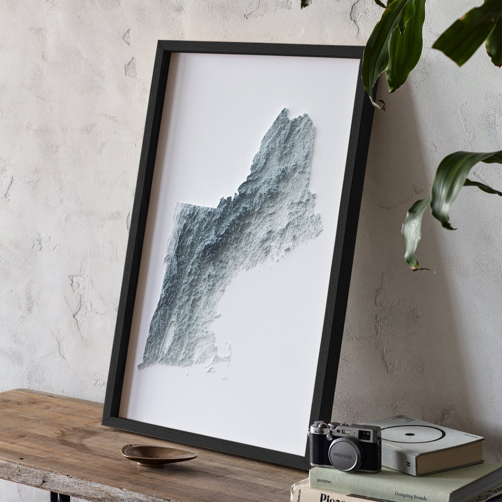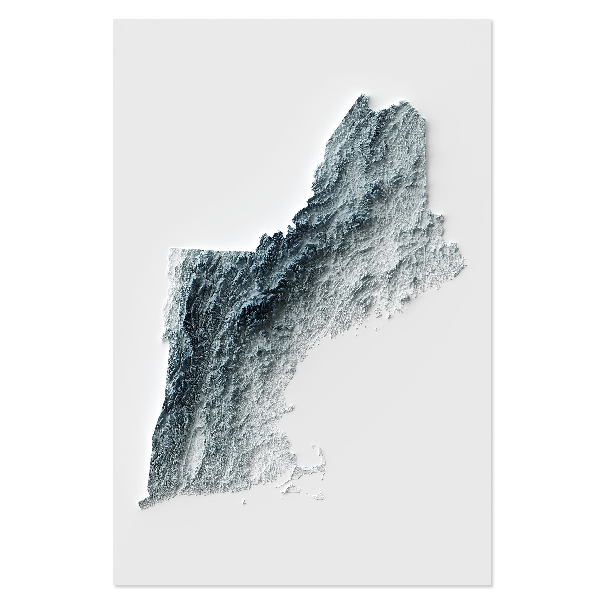 New England Elevation Map | Minimalist Style Topographic Relief