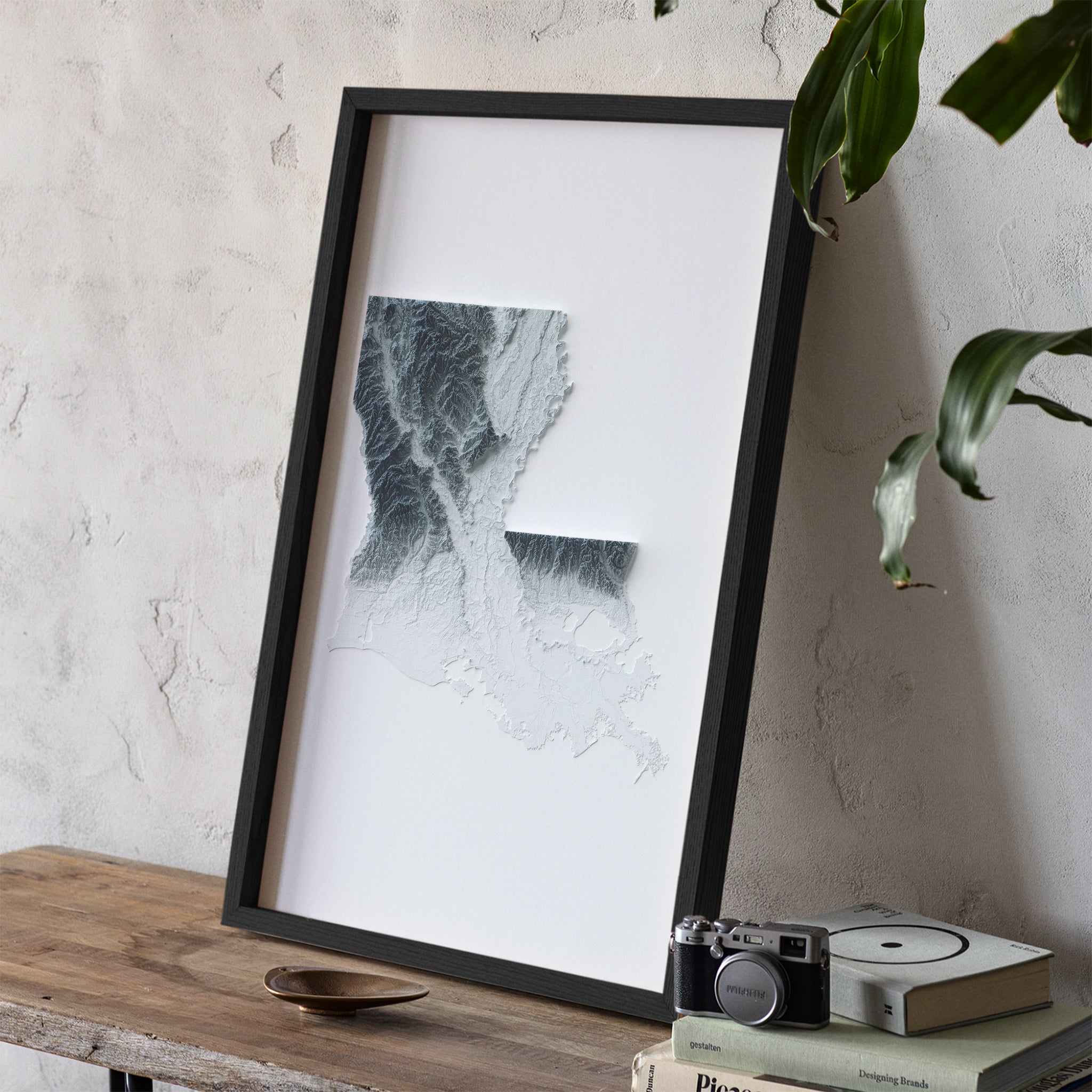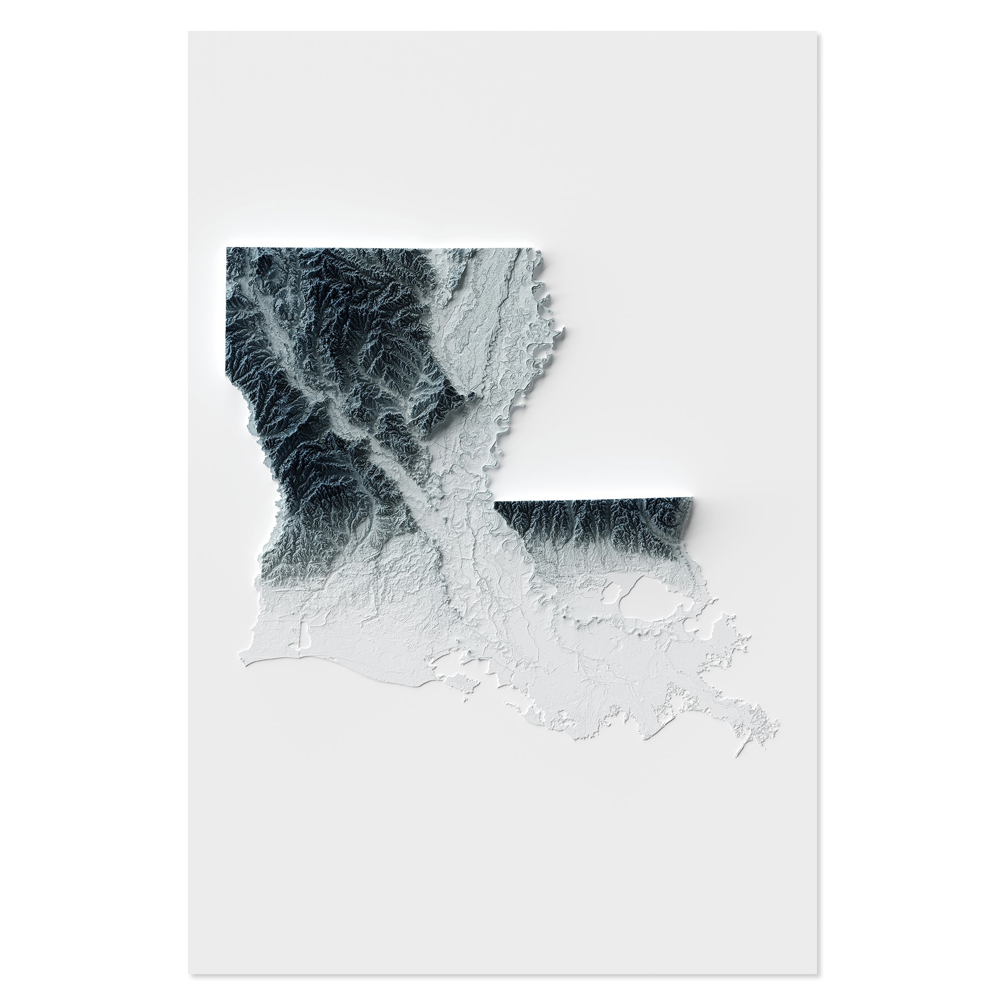 Louisiana Elevation Map | Minimalist Style Topographic Relief