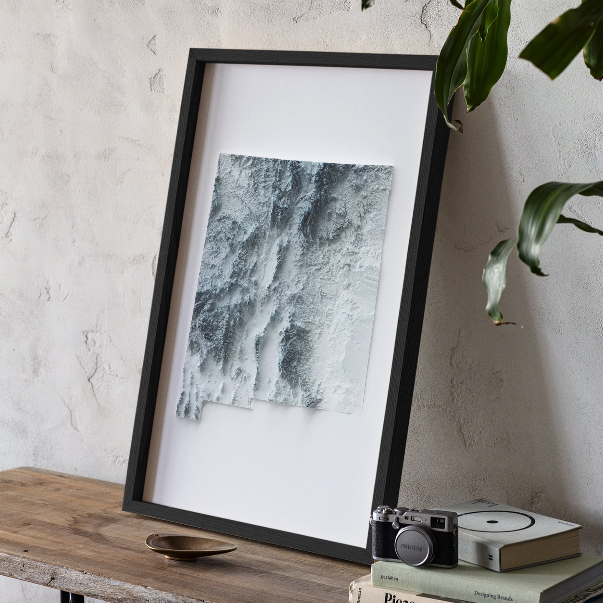 Our minimalist elevation map posters are original designs created using real satellite topographic data and advanced 3D rendering techniques. Each map features exaggerated terrain and dramatic shading to highlight the natural contours of the landscape, producing a striking optical illusion that appears three-dimensional. Printed as high-quality giclée art prints, these modern relief maps bring a clean, bold aesthetic to any space. Perfect for framing and they make for distinctive wall art for a refined addition to your home decor.