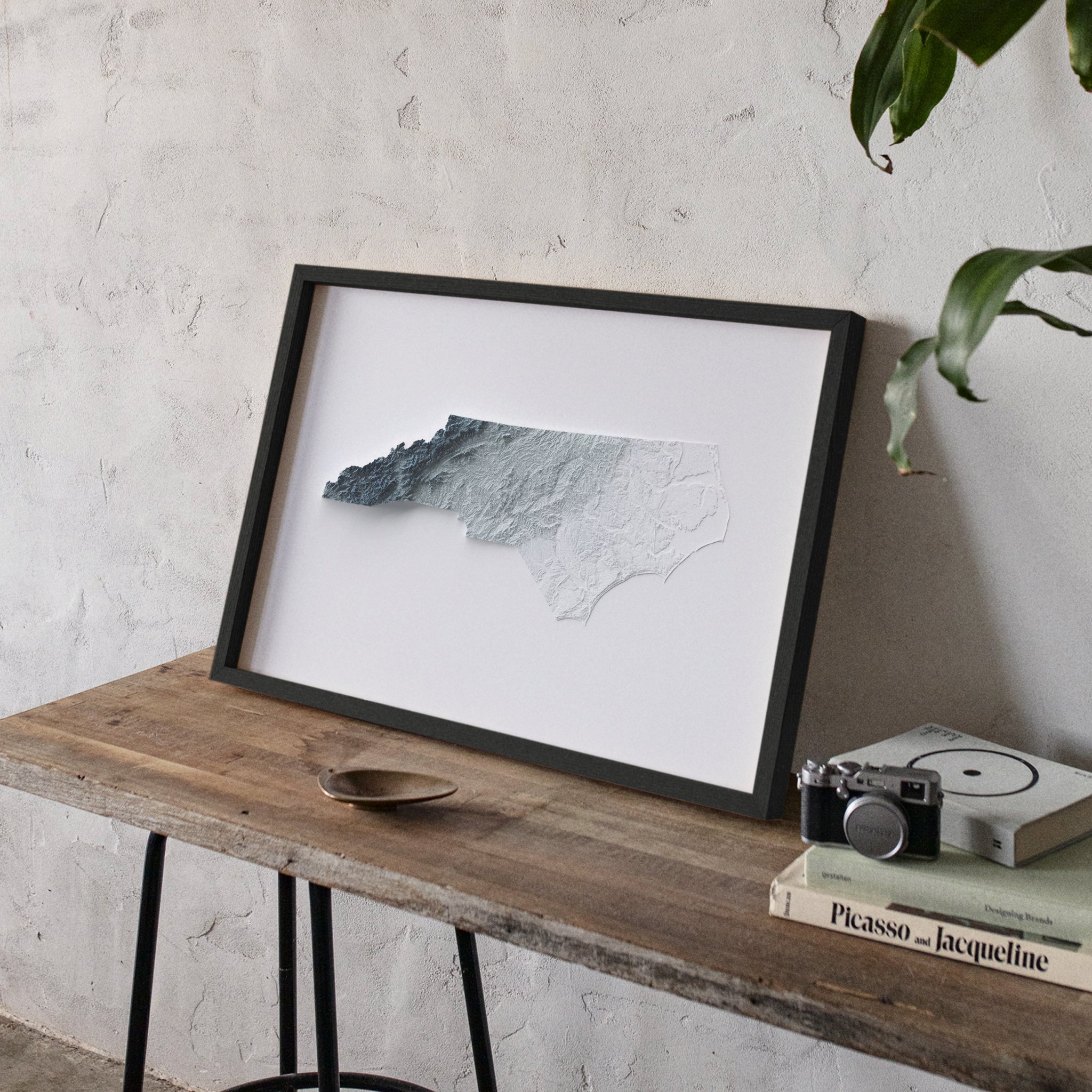 North Carolina Elevation Map | Minimalist Style Topographic Relief