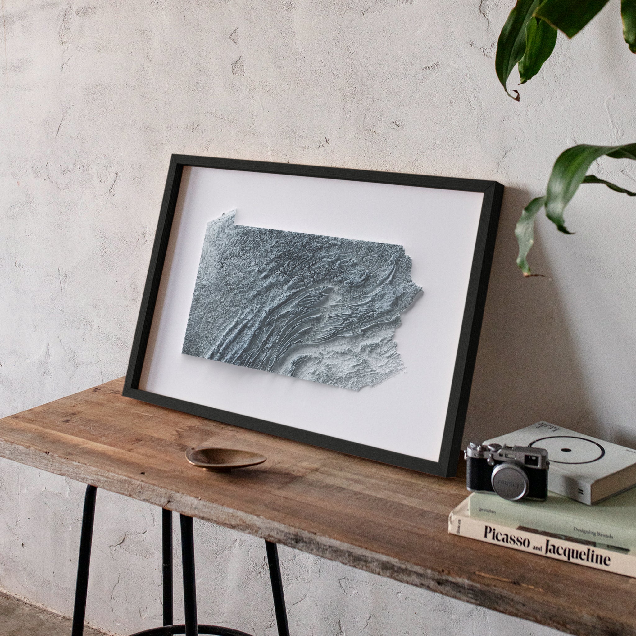 Pennsylvania Elevation Map | Minimalist Style Topographic Relief